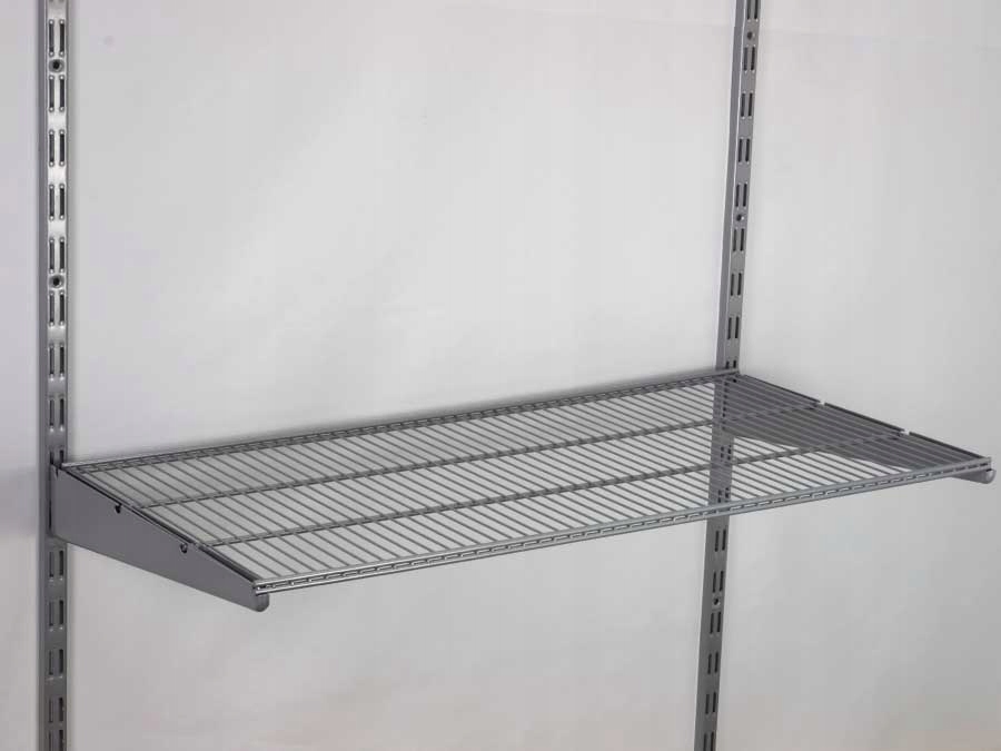 Полки крепятся с помощью кронштейнов Vario в несущих полосах U (двухрядные). Полки можно обрезать по ширине, например, до 60 см (кронштейны можно прикрепить в любом месте решетчатой полки)