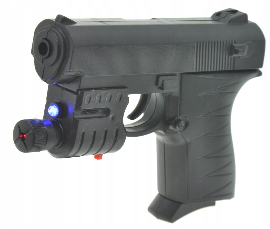 Пистолет имеет пружинный механизм, перезаряжать его можно, удерживая рычаг перезарядки, расположенный вверху, и потянув его. В комплект поставки пистолета входит лазер с синим фонариком, установленный на монтажной планке.