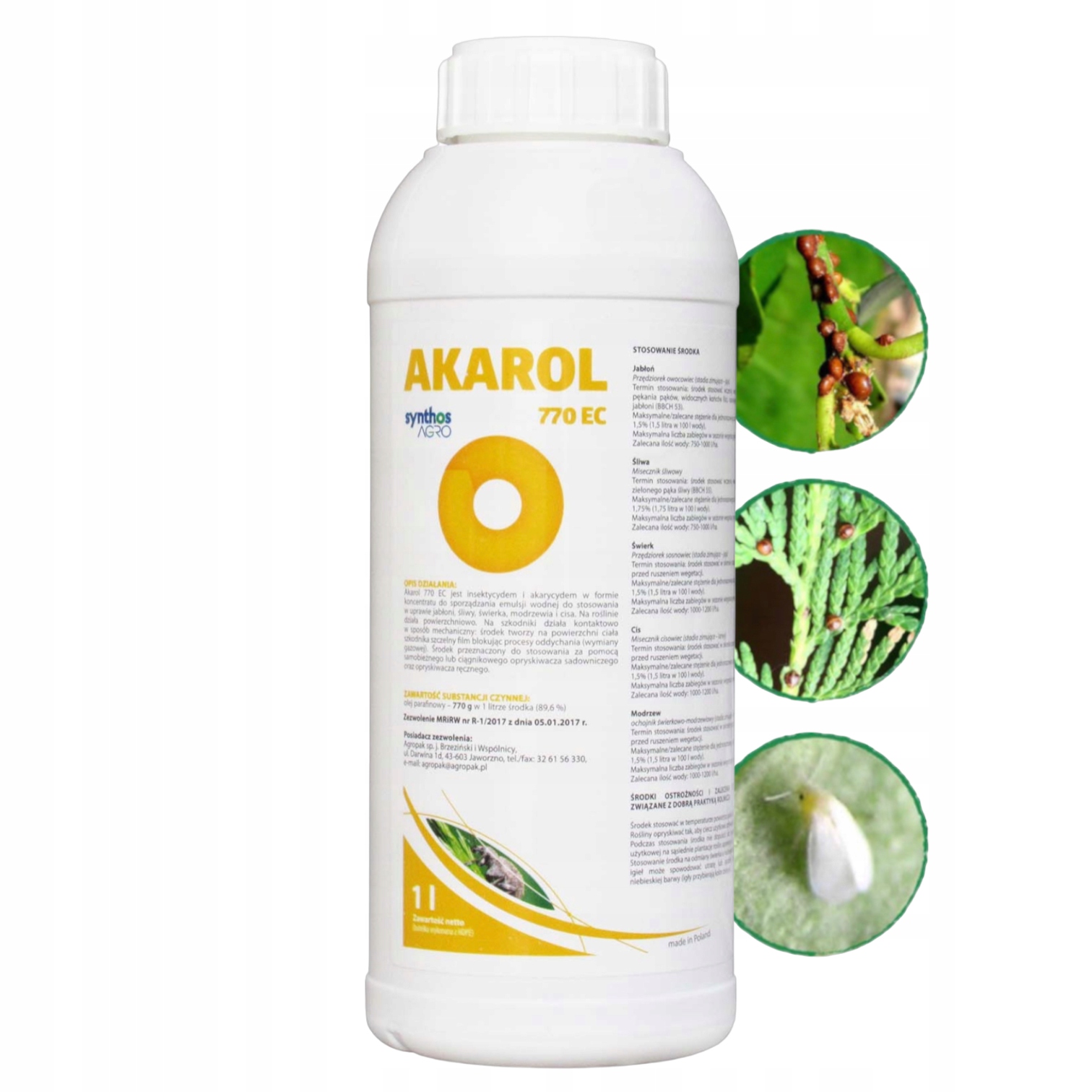Акарол 770 ЕС – инсектицид и акарицид в форме концентрата для приготовления водной эмульсии для использования при выращивании яблони, сливы, ели, лиственницы и тиса. Оказывает поверхностное воздействие на растение.