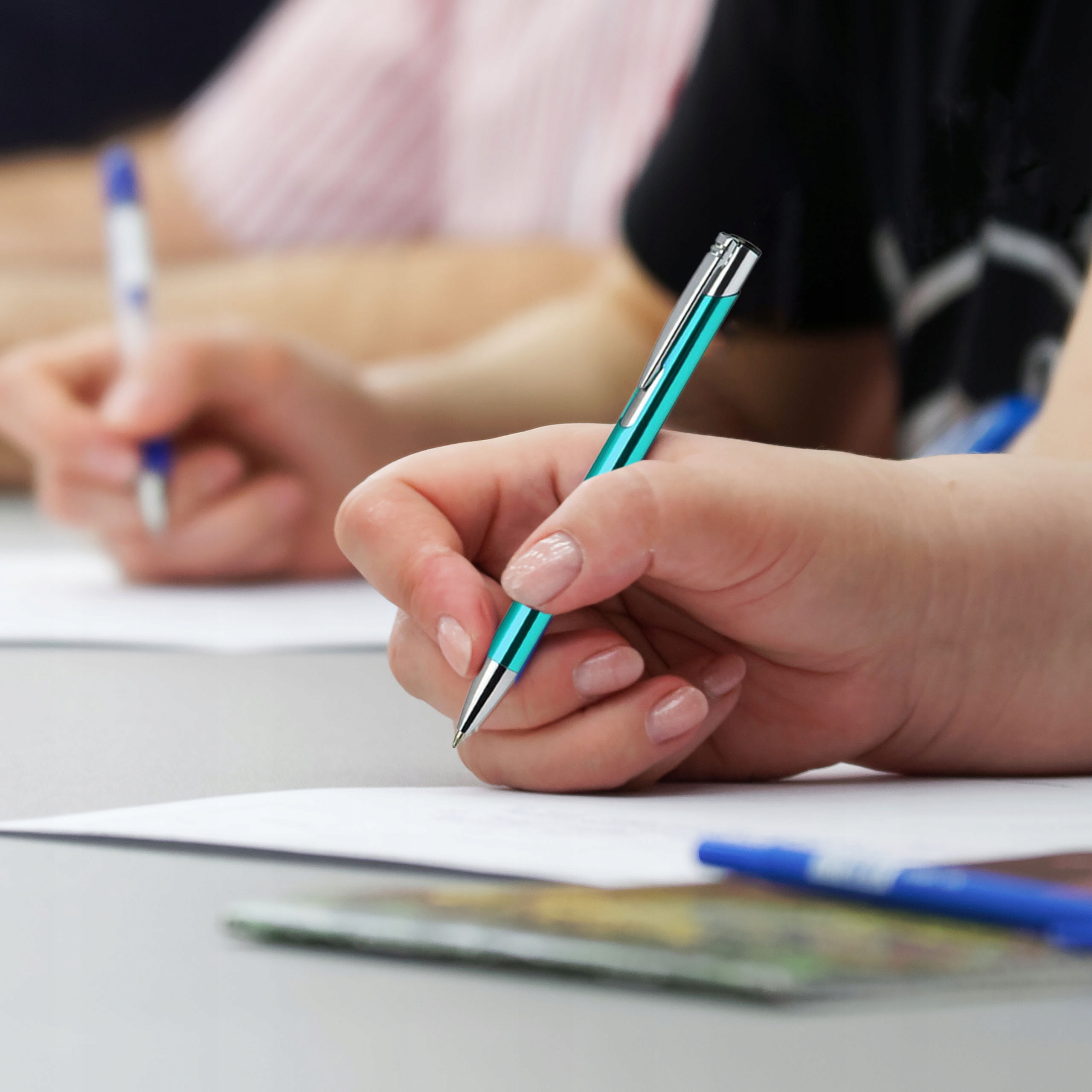 АКЦІЙНІ РУЧКИ З ВЛАСНИМ ГРАВІЮВАННЯМ БІРЮЗОВИЙ НАБІР 100 ШТ.