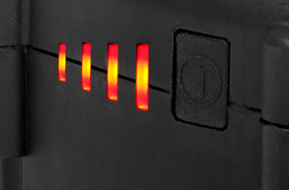 Короткая часть аккумуляторов оснащена четырехуровневым индикатором уровня заряда, который показывает, сколько энергии осталось в аккумуляторе. Чтобы проверить уровень заряда аккумулятора, просто нажмите кнопку-индикатор.