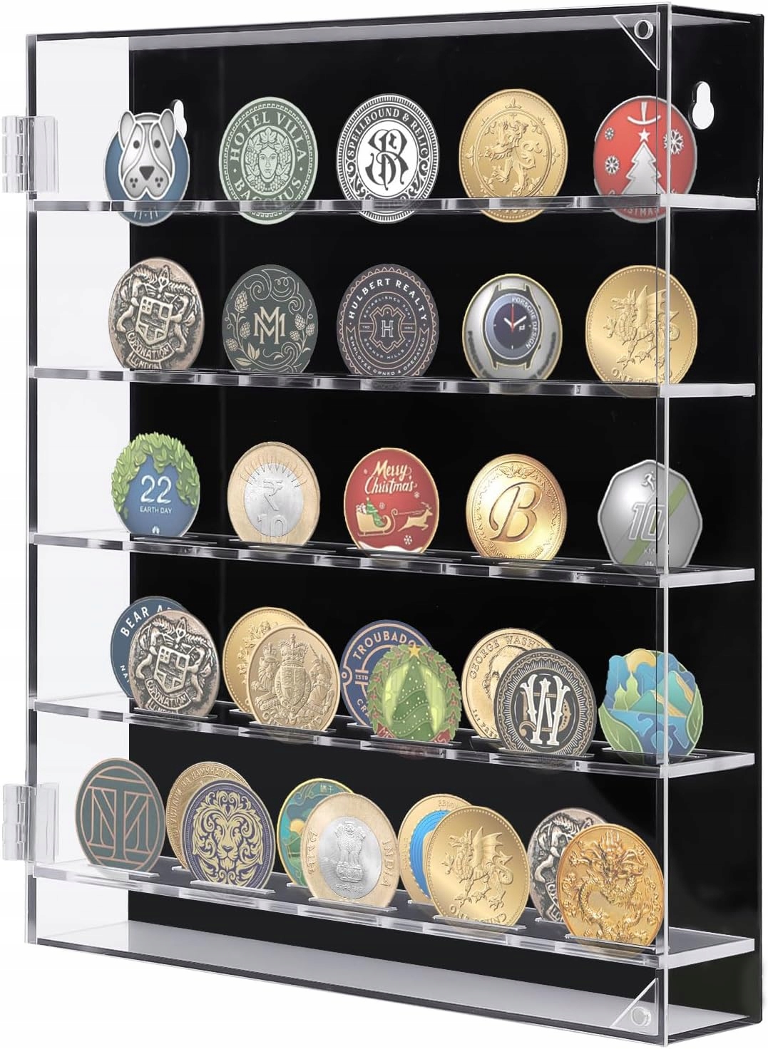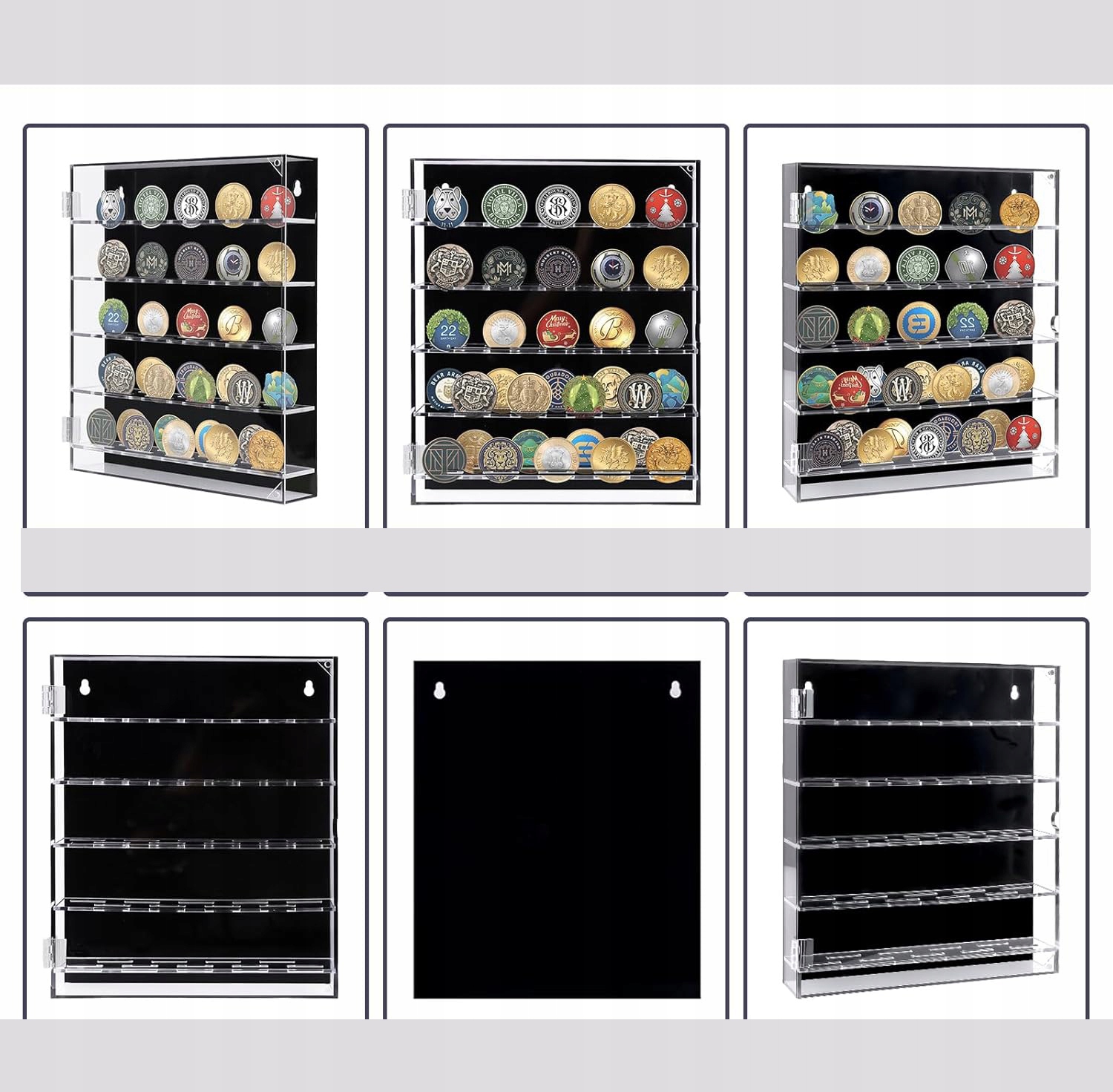 🐙🐙 БОЛЬШАЯ ВМЕСТИМОСТЬ: Выдерживает до 45 монет стандартного размера (диаметром 40 мм). Среднюю полку можно снять, чтобы вы могли видеть специальные военные монеты большего размера, например, монеты диаметром 70 мм.