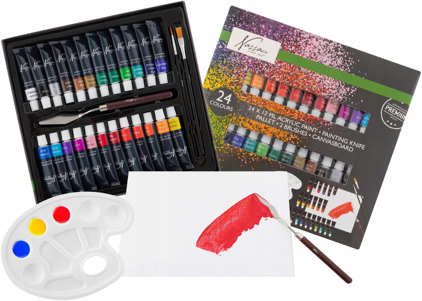 ⭐НАБОР АКРИЛОВЫХ КРАСОК ПАЛИТРА КИСТЕЙ ДЛЯ ШПАТЛЕВКИ ДЛЯ ХОЛСТА⭐