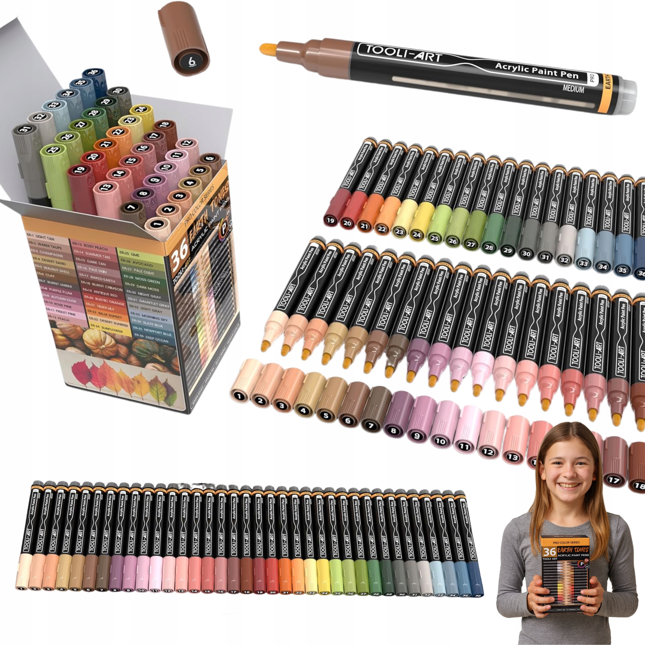 set -арт-арта 36 акриловых маркеров Земные тоны b>-это уникальная коллекция цветов, вдохновленных природой-с теплым коричневым, бежевым и оливковым зеленым, для деликатных роз, красных и серых.