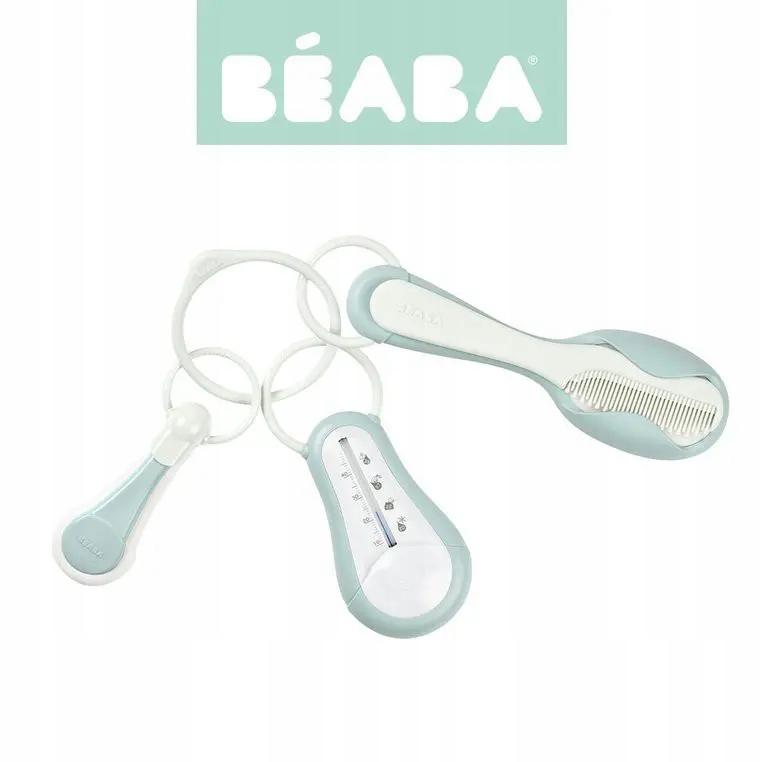 Аксессуары для ухода: термометр для ванны, кусачки для ногтей, щетка и расческа Green Blue Beaba. Практичный и эргономичный набор аксессуаров по уходу за ребенком от французского бренда BEABA. В набор входят: