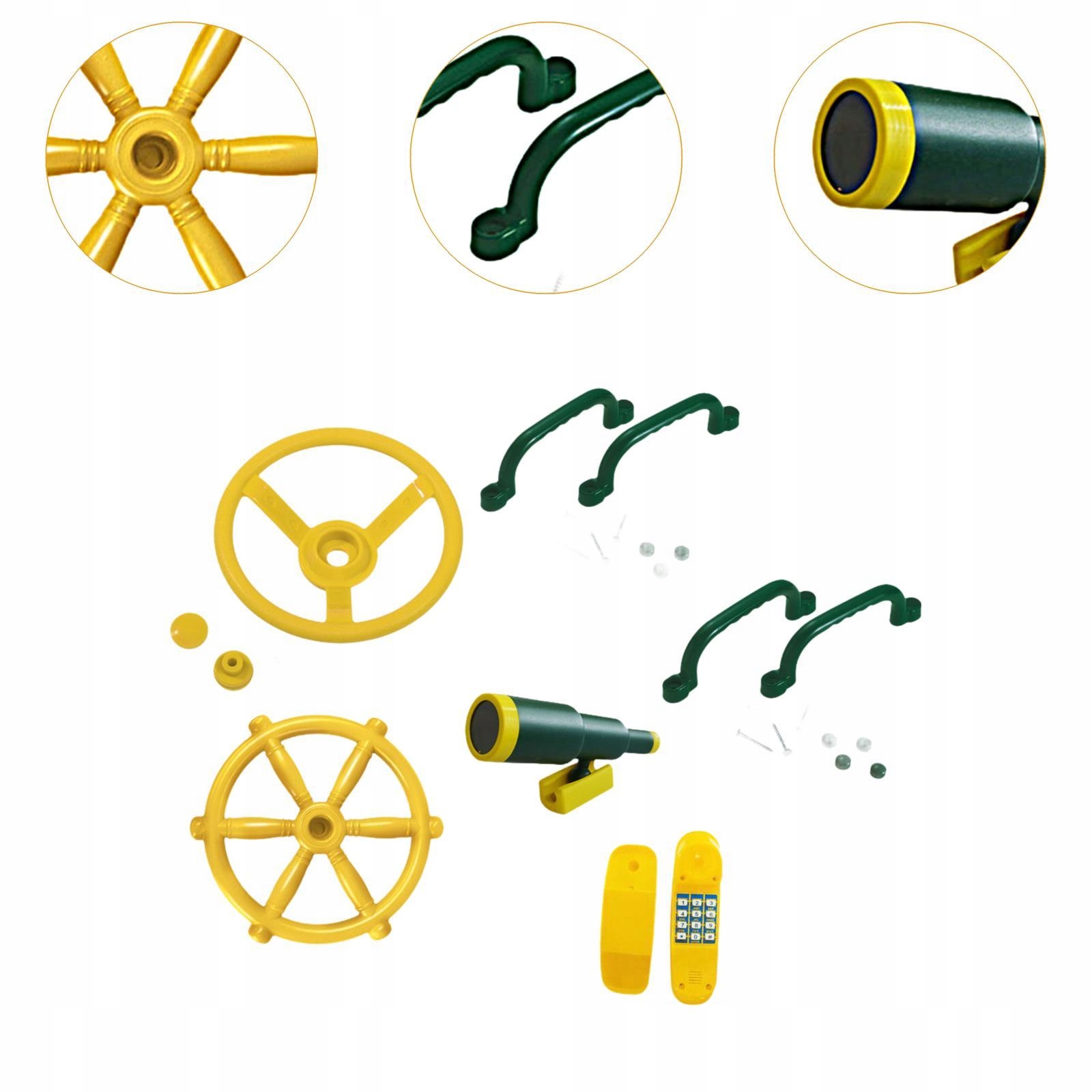 [Все в наборе]: этот набор игрушек для игровой площадки содержит 1 игрушечный телефон, 2 рулевого колеса в различных стилях, 1 пиратский телескоп и 2 пары ручек, которые создадут забавную сцену для веселья для ваших малышей