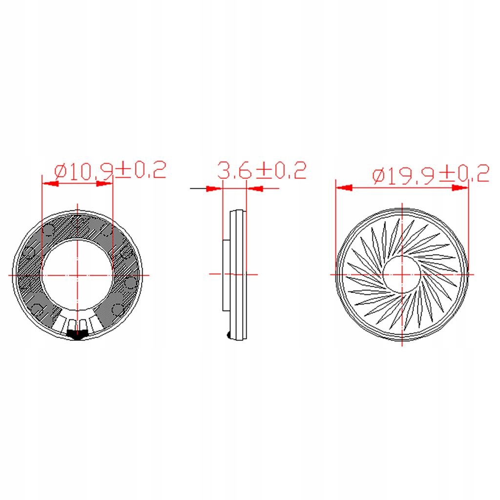 Форма: круглый; Диаметр динамика: 20 мм/0,79 дюйма