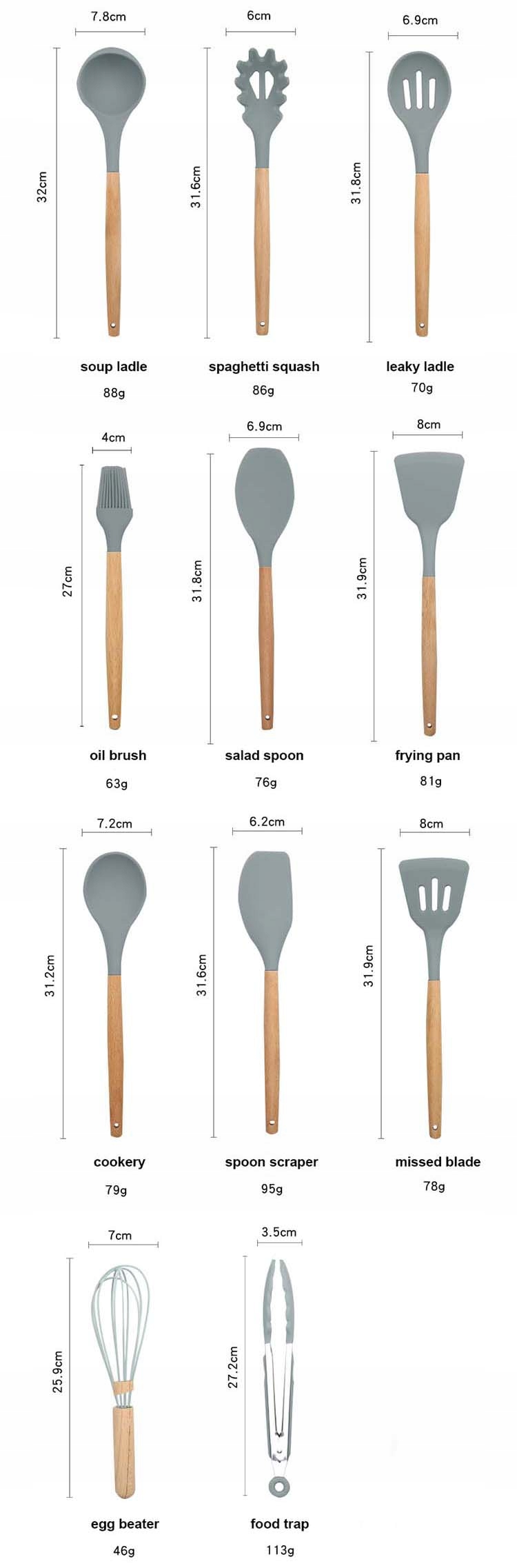 - Материал: силикон, бамбук, нержавеющая сталь сталь, керамика