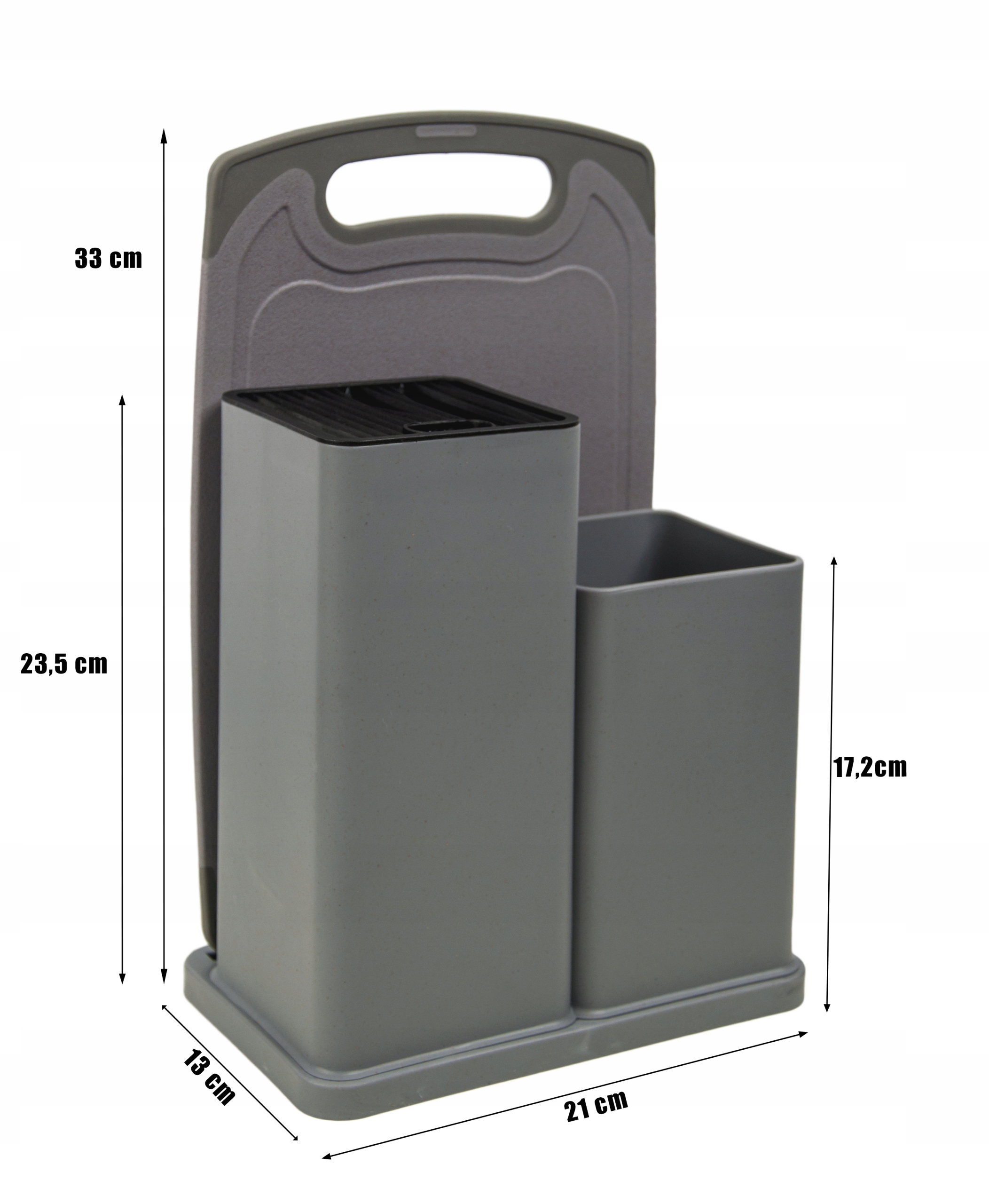 Их также легко содержать в чистоте. Ведро, в которое помещаются аксессуары, имеет специальное отверстие, благодаря которому они будут сохранять гигиеничность и отсутствие влаги. Весь комплект расположен в одном месте близко друг к другу, что практично. Сзади также есть подставка для разделочной доски!