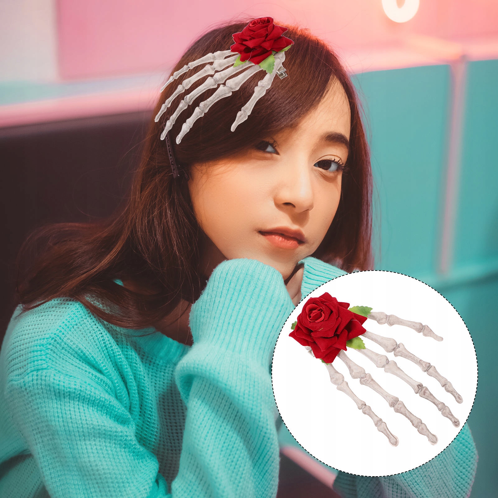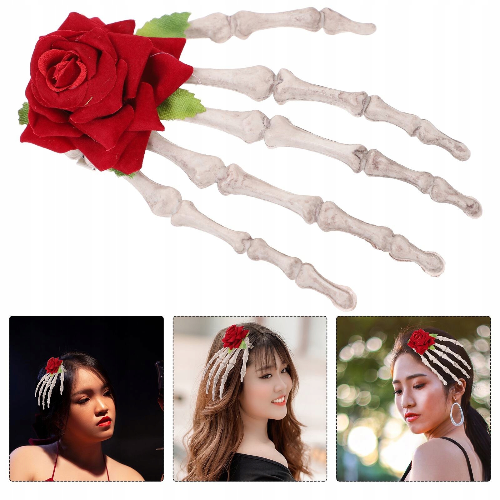 ✅Это простой и изящный головной убор для девочек, который в основном изготовлен из прочного твердого пластика и может плотно захватывать волосы или одежду. Панковская форма когтей скелета и розы на каждом из них выделит вас из толпы.
