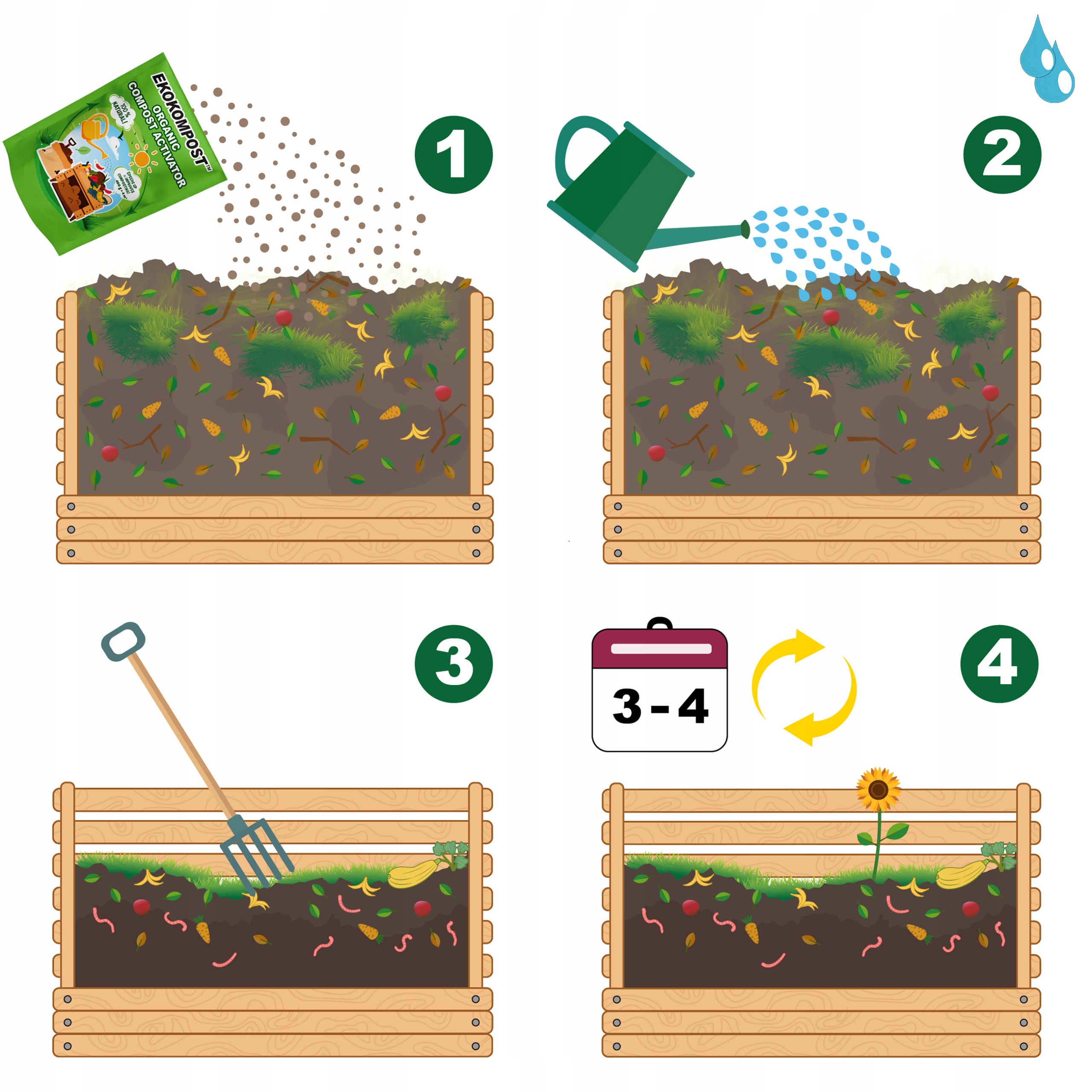 1⃣ разбрызгивает компостер Ekocompost ™ (100 г на 1 м³ компоста). Готовый!
