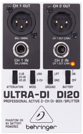 Active Di Box Behringer DI20 -это профессиональное многофункциональное студийное устройство и живые мероприятия. Di-Box используется для подключения устройств, которые работают без заземления: клавиатура, ноутбук, электрогитара, акустическая гитара. Очень долговечный металлический корпус DI Box. Внутренняя батарея автоматически отключается, когда предоставляется фантомный источник питания.
