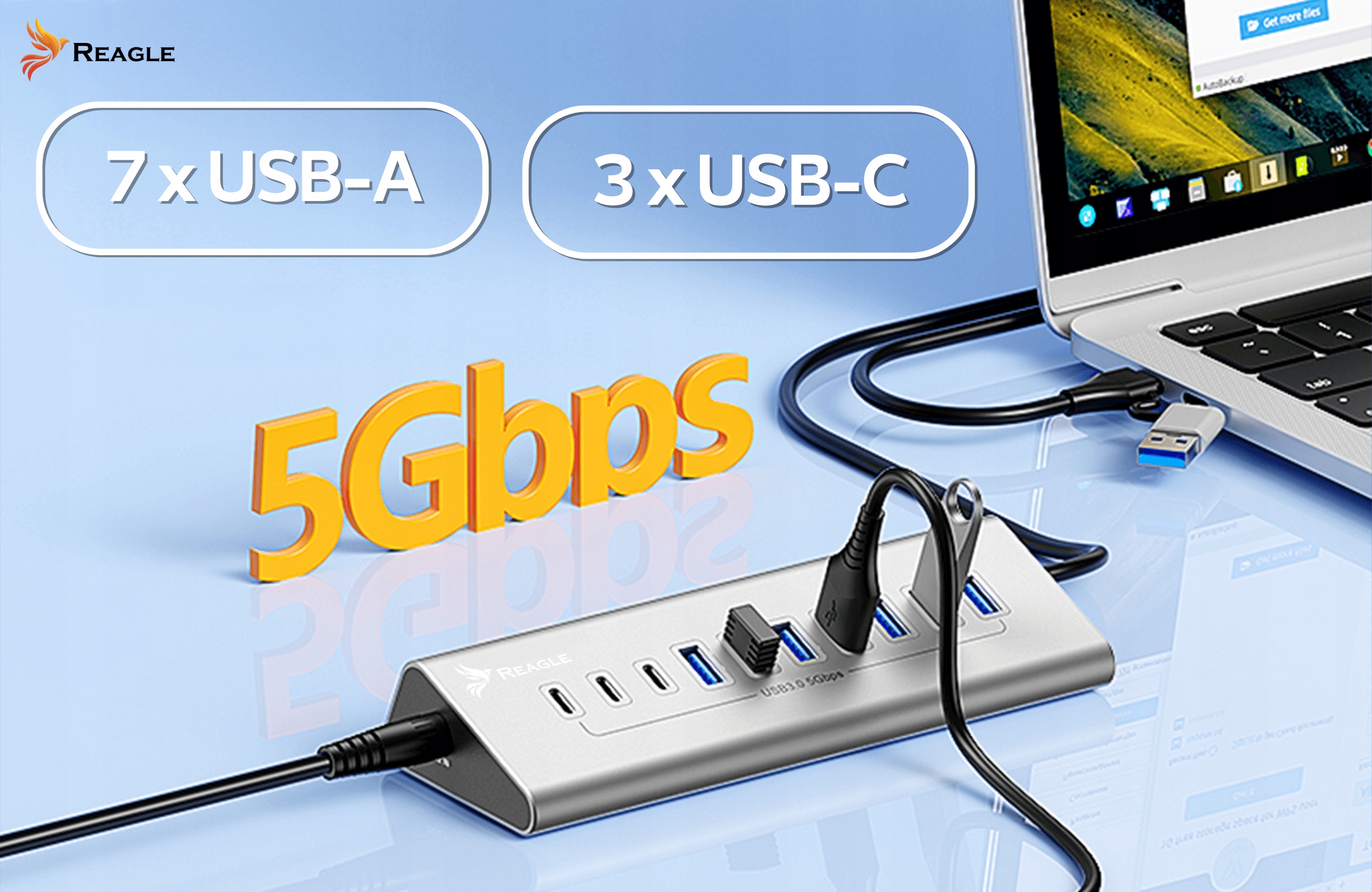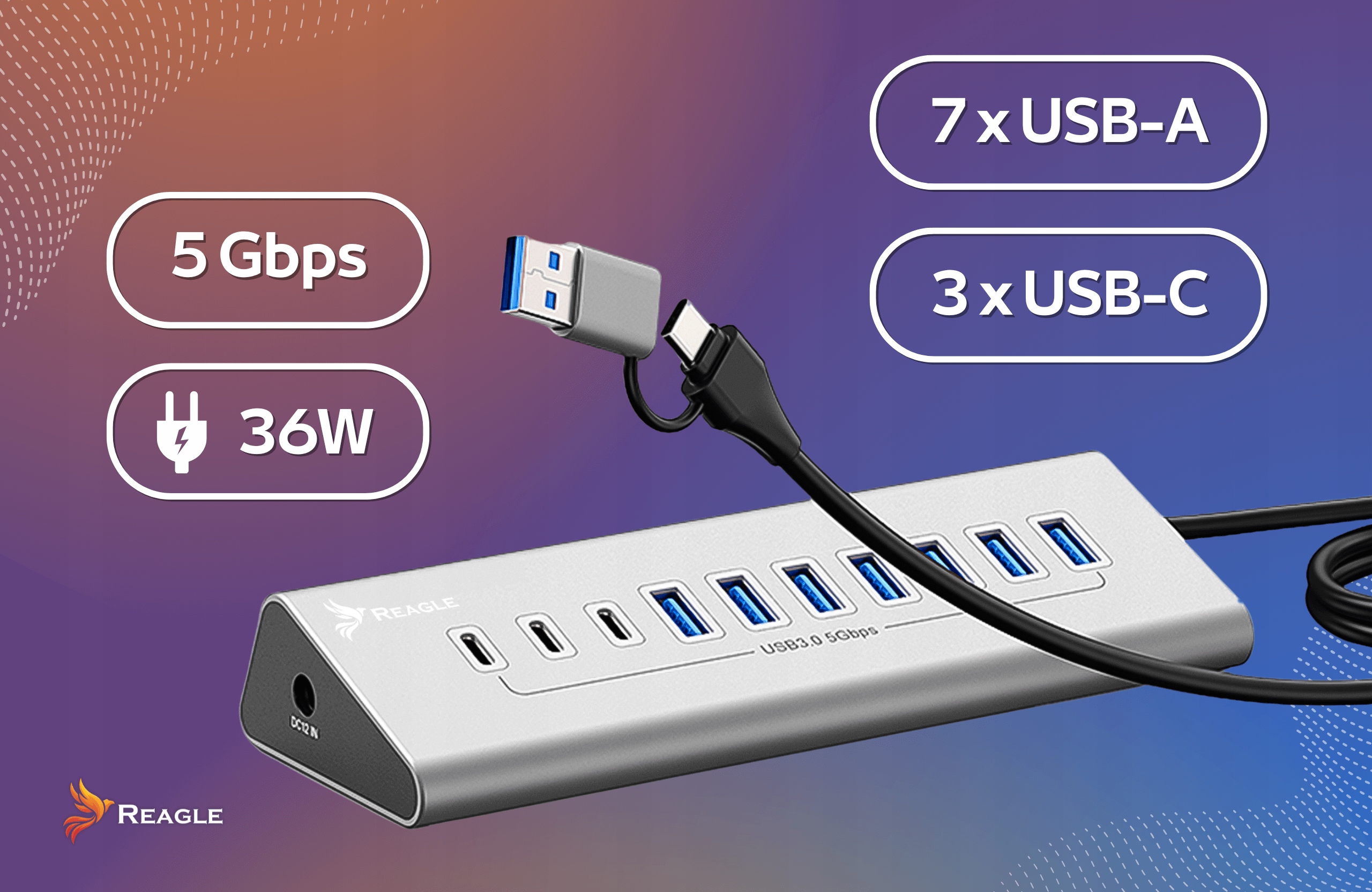 hub Reagle Rhub45ac идеально подходит для удаленной работы, офисной работы и во время презентации. Независимо от того, используете ли вы ноутбук, MacBook, Desktop или Ultrabook- благодаря кабелю 2IN1 USB-A/USB-C , вы подключите концентратор практически к любому устройству.