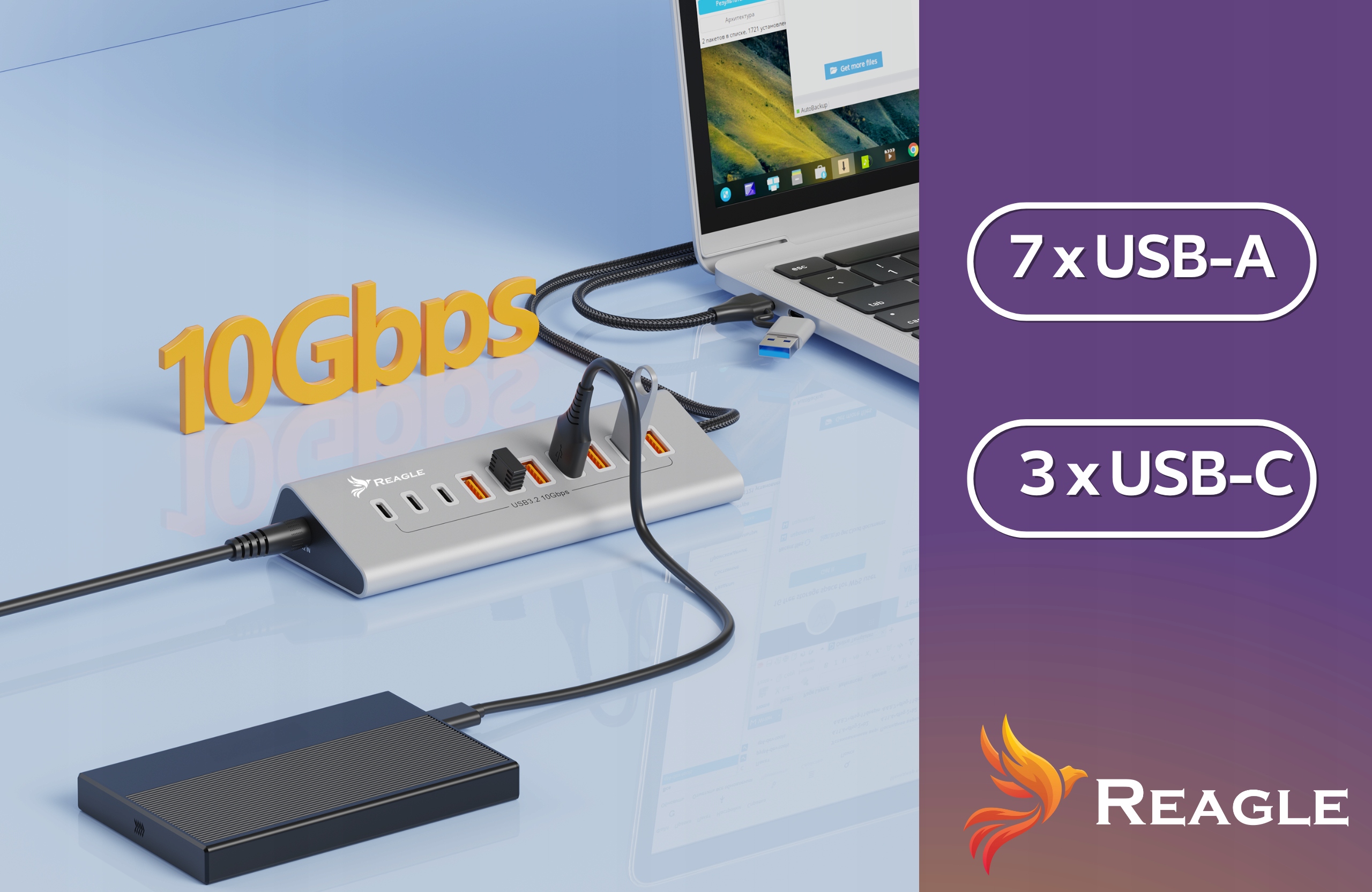 - Порты: 7x USB-A + 3x USB-C (USB 3.2 Gen2 — 10 Гбит/с)