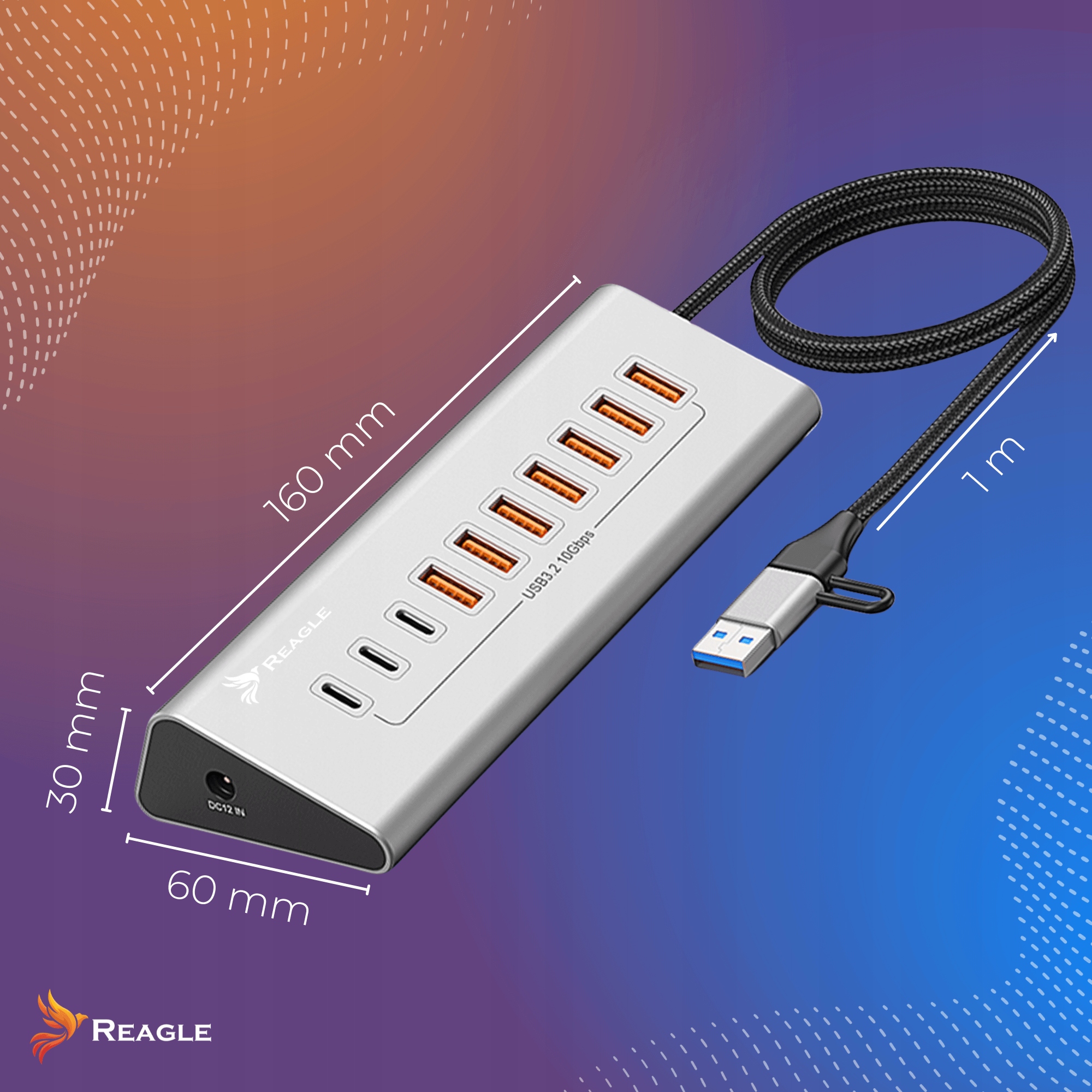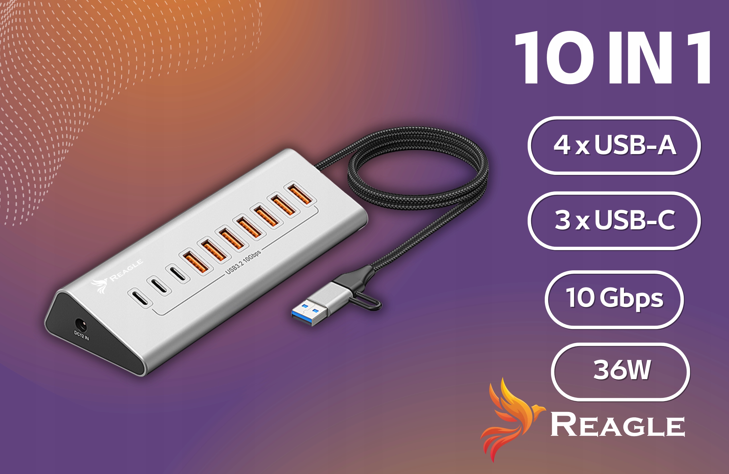 АКТИВНЫЙ USB-ХАБ С БЛОКОМ ПИТАНИЯ 36 Вт, 10 ПОРТОВ, РАЗДЕЛИТЕЛЬ USB 3.2