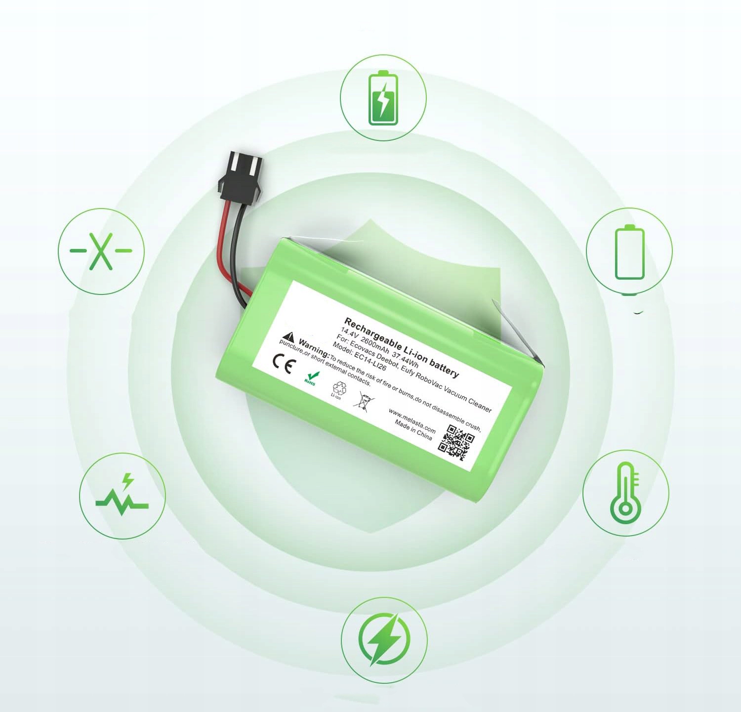 Запасной аккумулятор на 100 % совместим с оригинальным и его легко подключить. Он оснащен встроенной интеллектуальной системой зарядки и защитой от чрезмерной разрядки, предотвращающей быструю разрядку и продлевающей срок службы батареи.