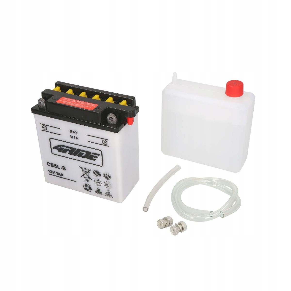 Кислотная/стартерная/сухая аккумуляторная батарея с электролитом (продажа ограничена) 4 RIDE 12 В 5 Ач 65 А P+ В комплект входит электролит для обслуживания 121x61x131 мм Сухая заряженная батарея с электролитом Ремень CB5L-B