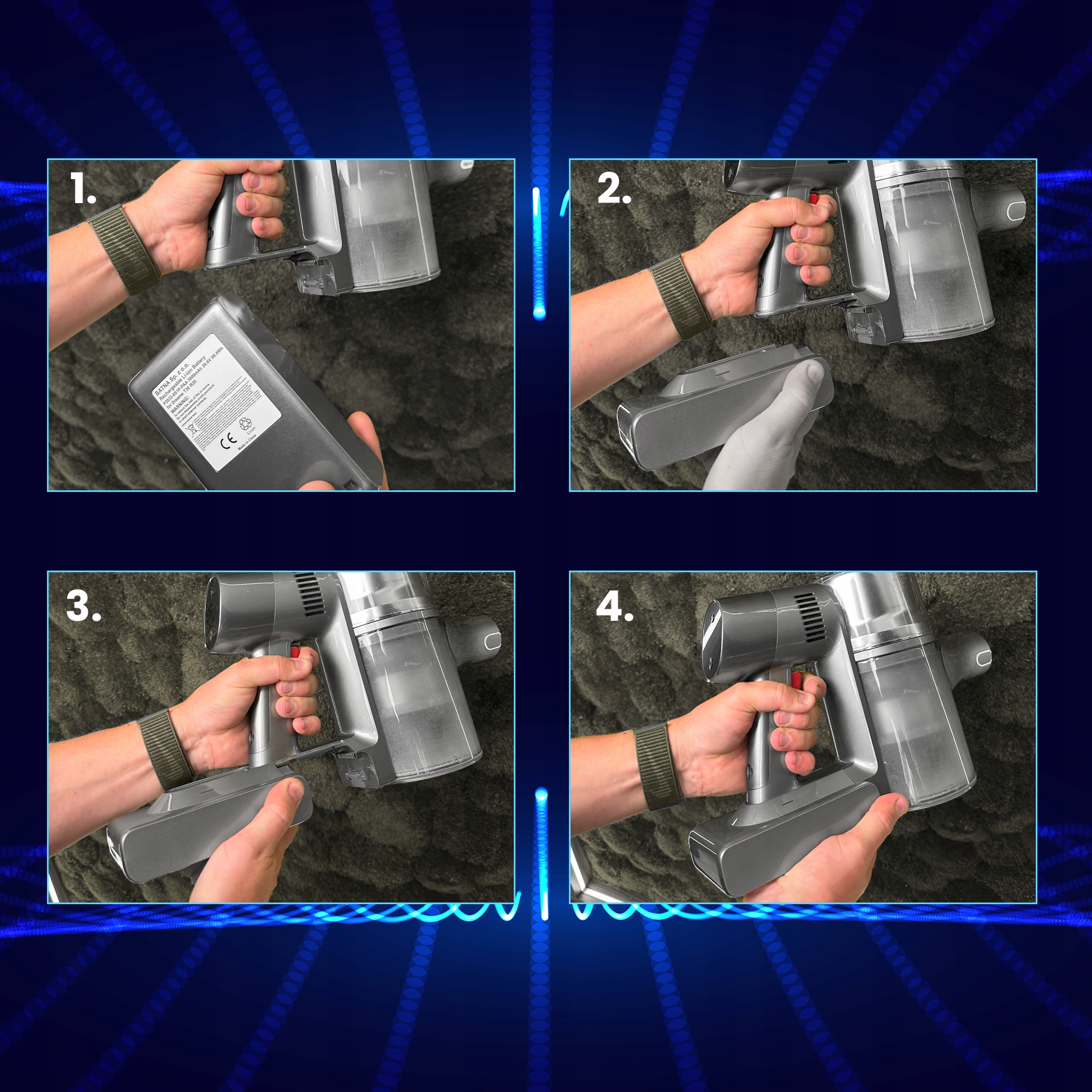 Увеличенная мощность пылесоса – новый аккумулятор восстанавливает полную мощность всасывания, что обеспечивает более эффективное удаление грязи и пыли с различных поверхностей.