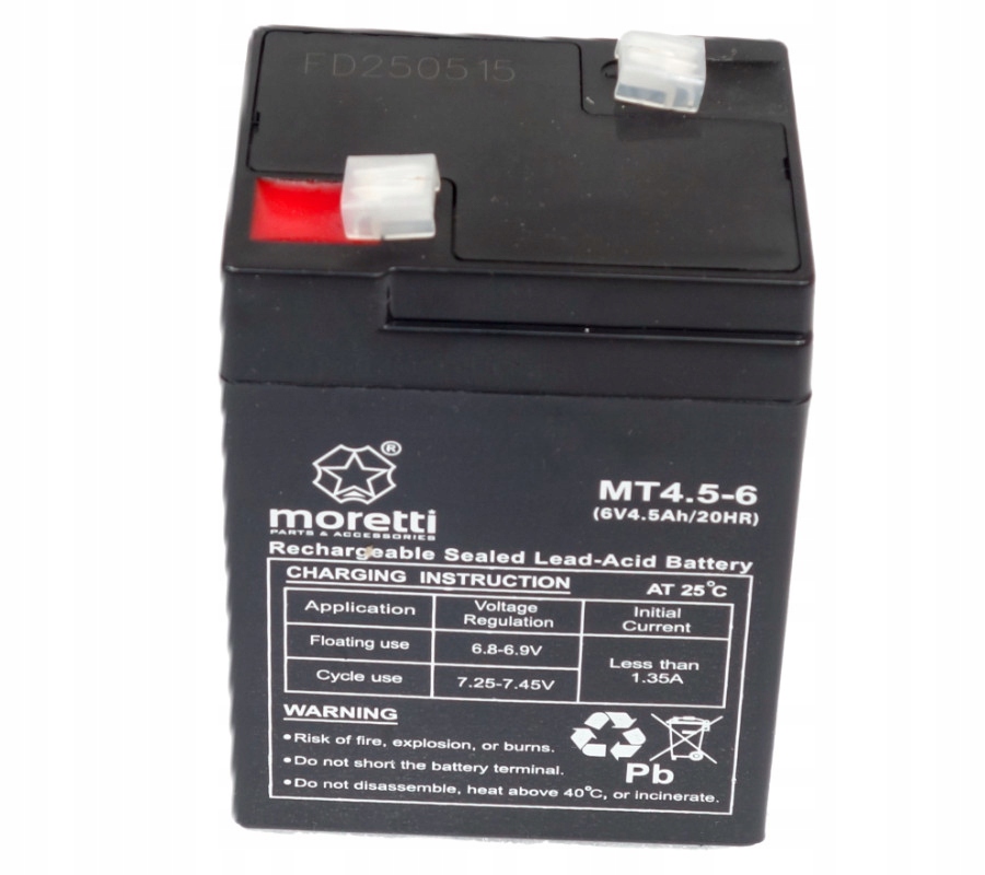Аккумулятор Moretti MT4.5-6 — надежный источник питания, изготовленный по технологии AGM VRLA.
