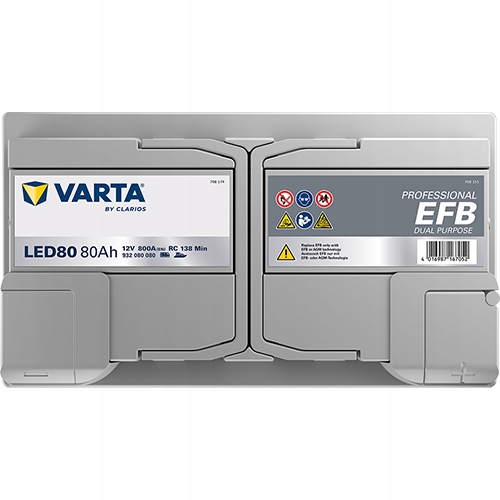 Профессиональный аккумулятор VARTA 80Ah LED80 EFB для прицепа для лодок и кемперов