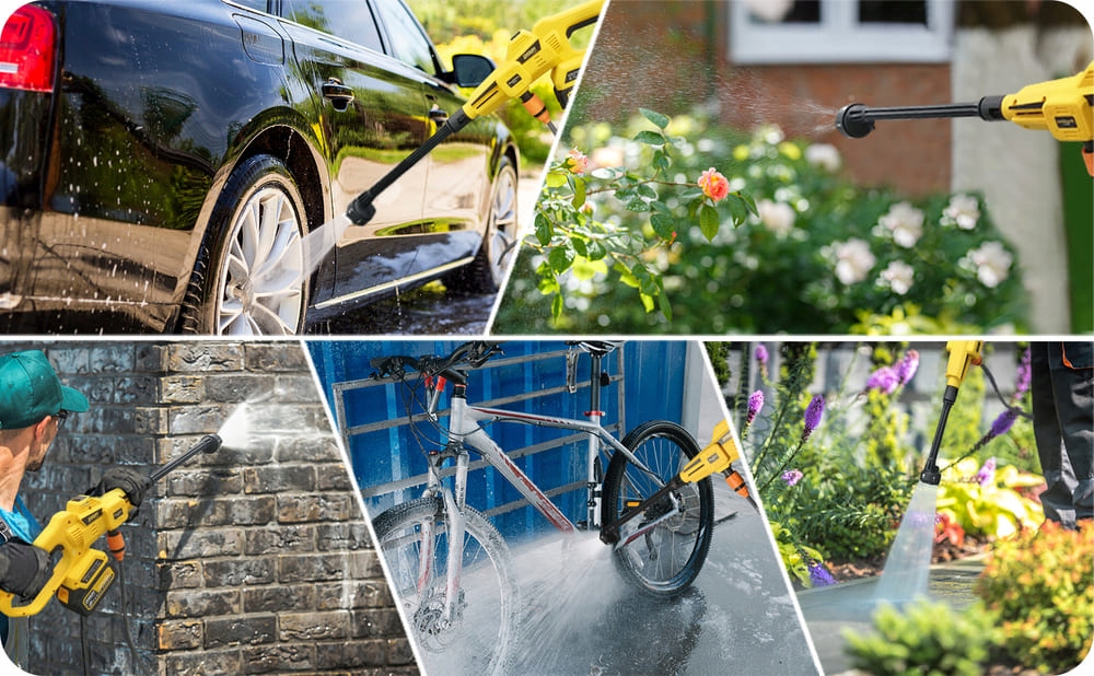 Удобный дизайн облегчает работу с устройством. Эта беспроводная мойка высокого давления забирает воду из любого источника воды через входящий в комплект всасывающий шланг.