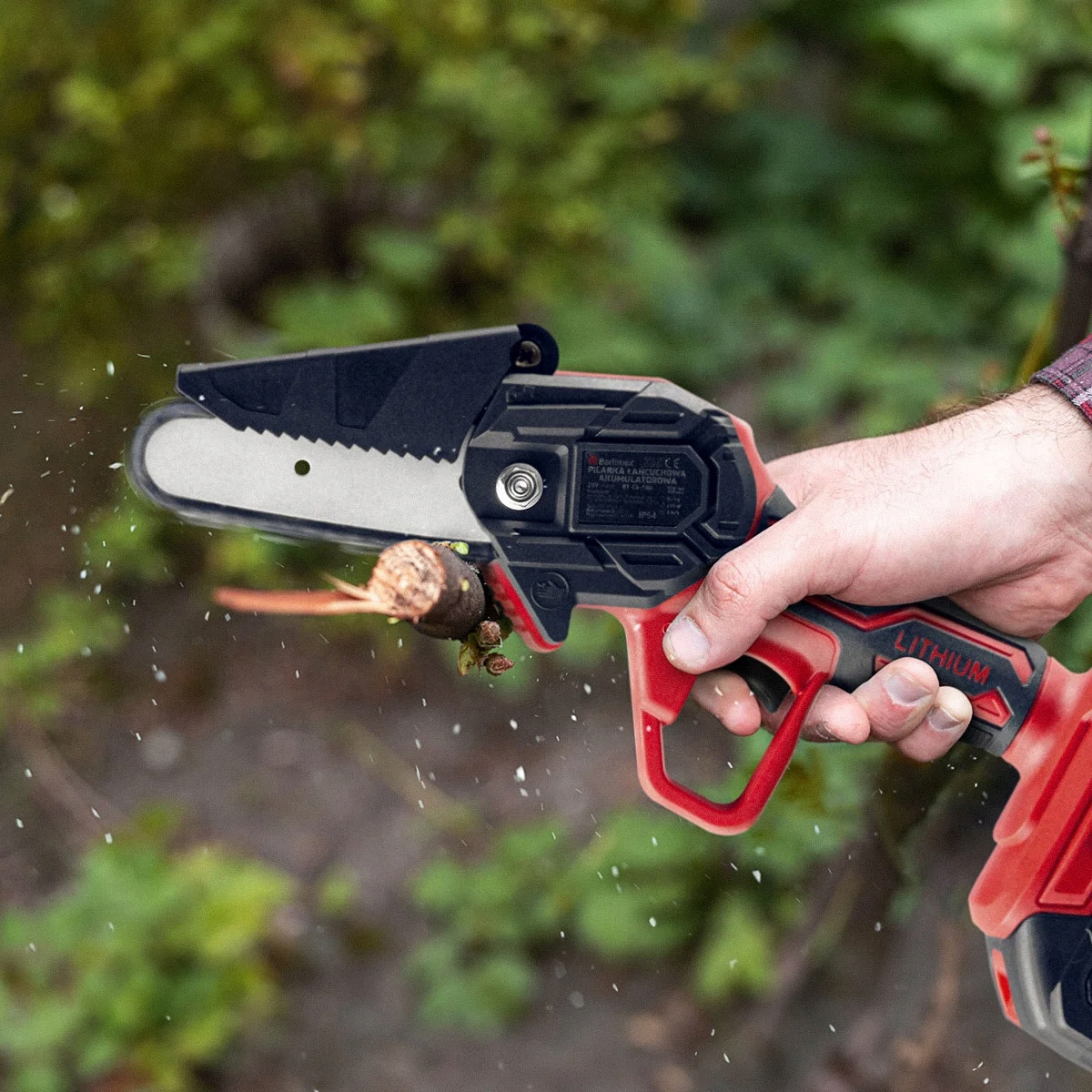 В пиле BT-CS-100 использовался двигатель с 800W , что является большой долю мощности устройства в срок службы батареи. Высокая скорость цепочки на сумму до 6 м/с Гарантия Удобная и эффективная работа с устройством. В то же время это напряжение является полностью безопасным для пользователя