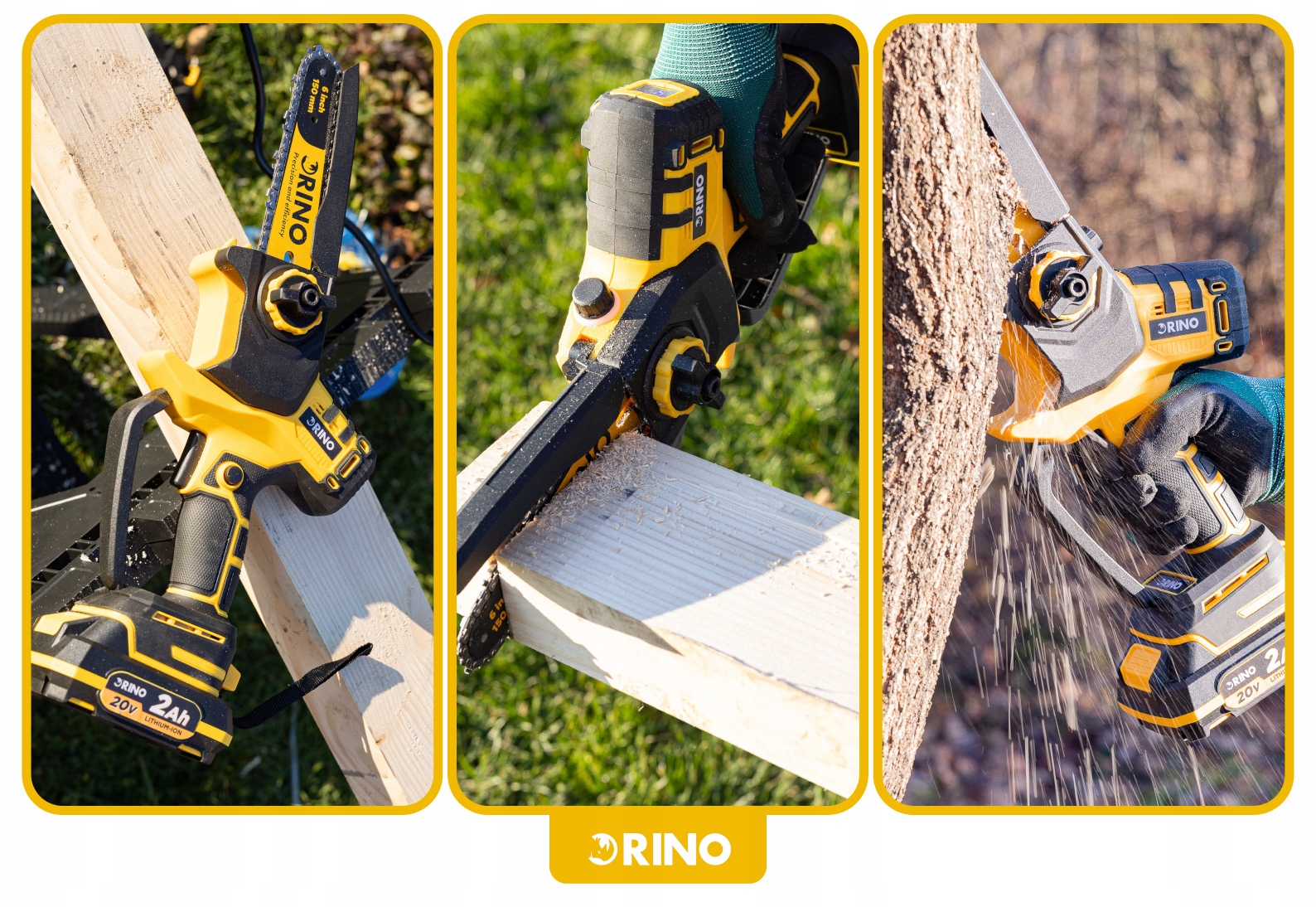 - Познакомьтесь с RN-23340, компактной аккумуляторной бензопилой > Бренд Rino, который станет вашим незаменимым помощником в саду.