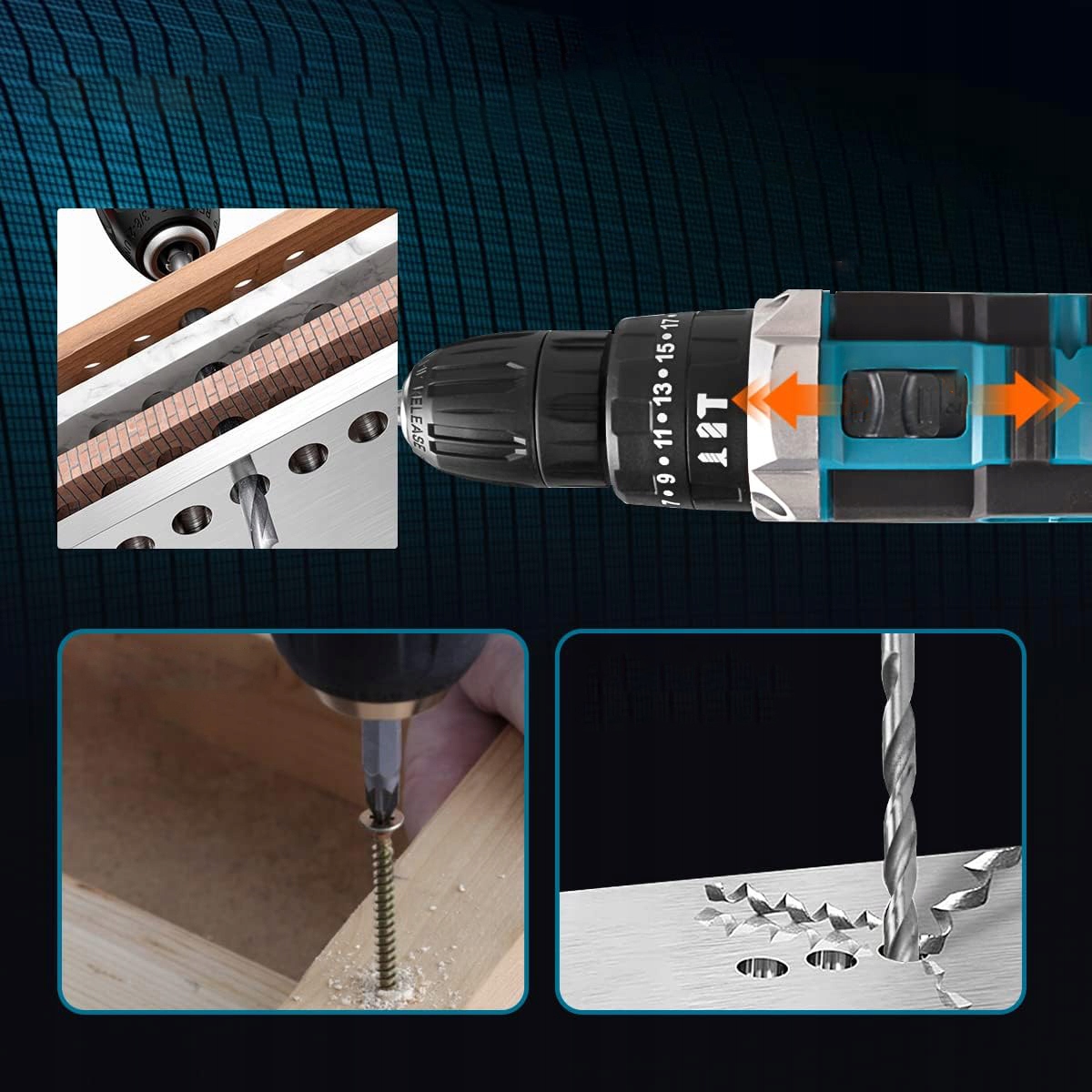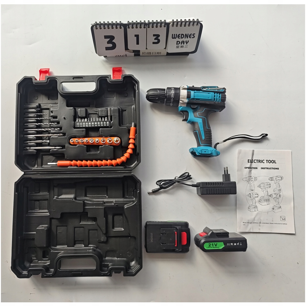 Аккумуляторная дрель 21 В, максимальный крутящий момент 45 Нм. Компактный размер сочетает в себе два диапазона скоростей и сцепление 21+3, что обеспечивает точный контроль при работе с деревом, металлом, пластиком и всеми работами, связанными с отверткой. Идеально подходит для сверления и крепления, подходит для таких применений, как обрамление, ремонт и сборка шкафов. Используется литий-ионный аккумулятор емкостью 1200 мАч. Встроенный реверсивный двигатель имеет две настройки скорости: 0–400 об/мин и 0–1500 об/мин и широко используется.