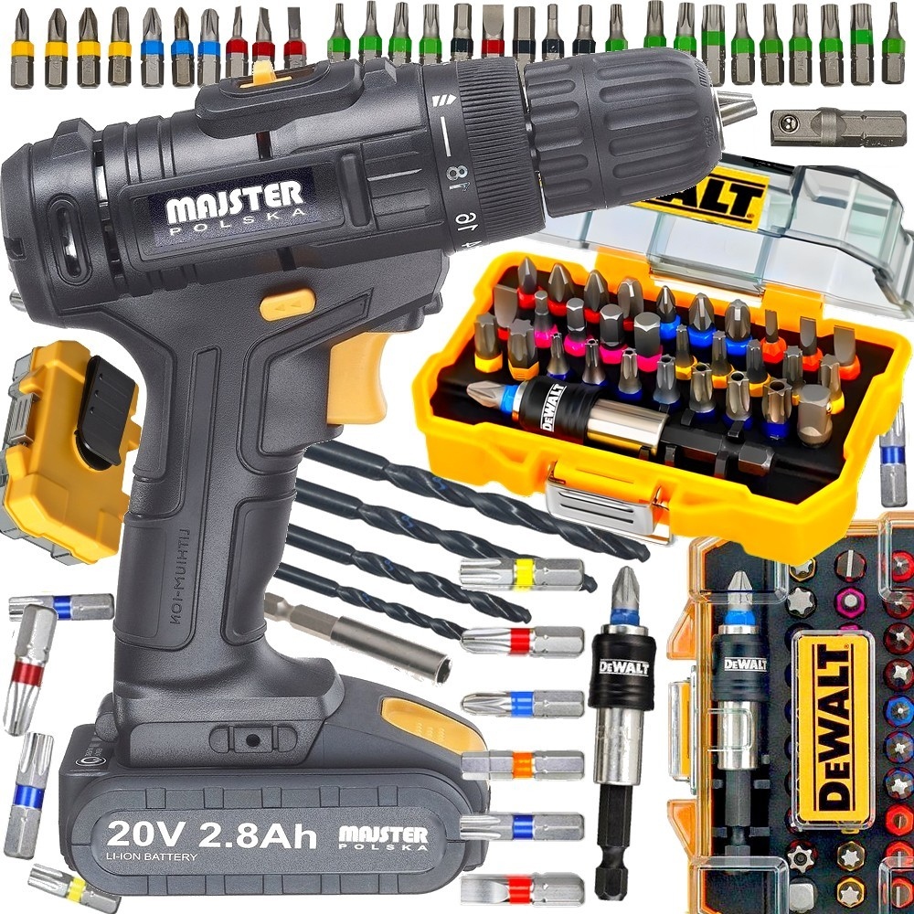 АКУМУЛЯТОРНА ДРЕЛЬ-ВЕРТАТ 20V 2x2.8AH DEWALT БІТИ 32 ЧАСТИНИ КЕЙС