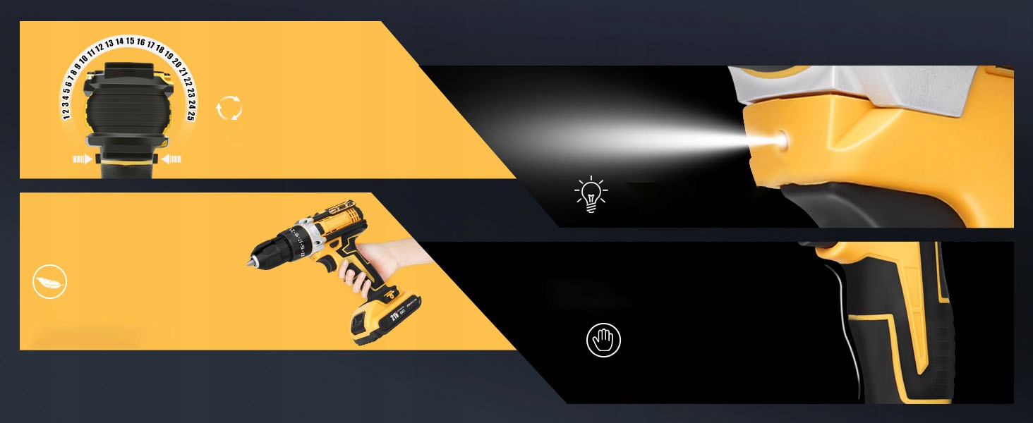 В наборе отверток используется мотор-редуктор с двойным подшипником, полностью изготовленным из меди. Высокопроизводительный двигатель обеспечивает высокую и стабильную мощность и длительное время работы. Максимальный крутящий момент 35 Нм делает этот инструмент подходящим для многих проектов: от закручивания шурупов до сверления отверстий в металле или дереве.