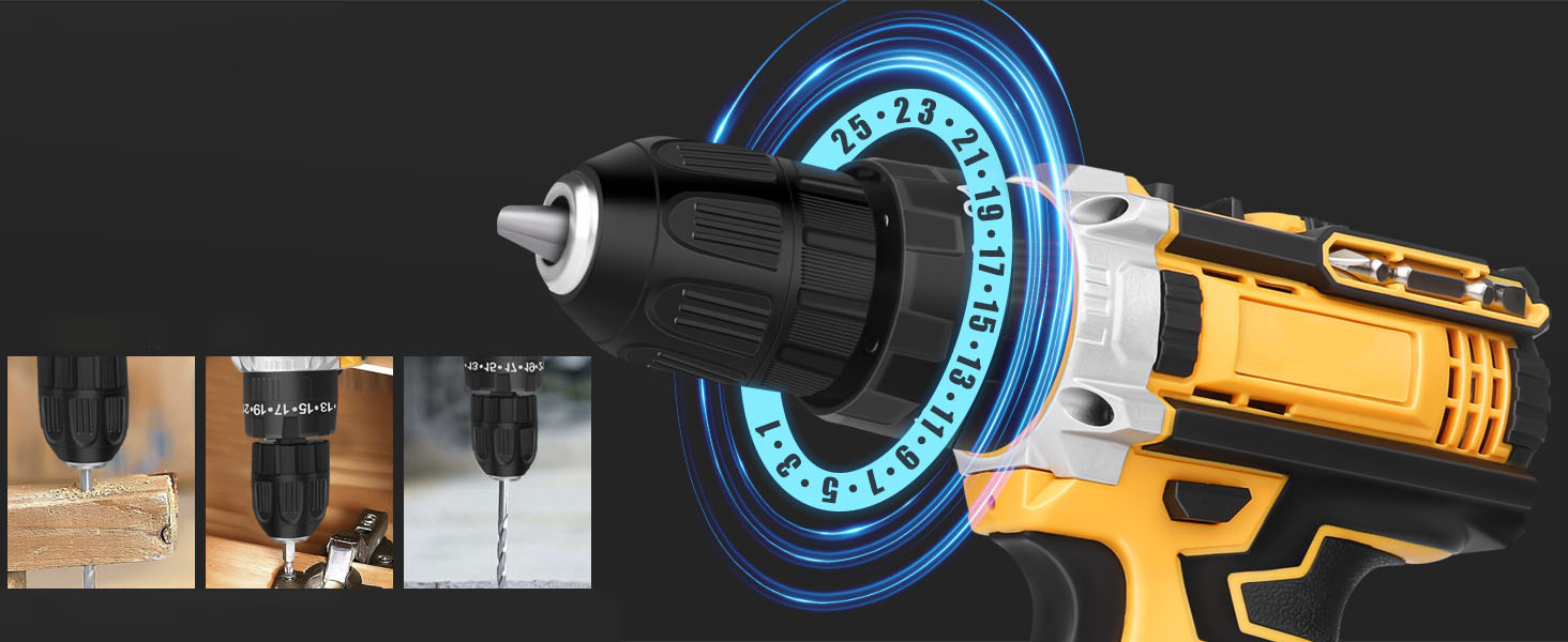 Набор сверл поставляется с большим быстрозажимным патроном 3/8 дюйма (10 мм) для превосходного удержания бит. Оснащен режимом работы 3-в-1 (отвертка, дрель, молоток). Эта дрель имеет регулируемую скорость (0–450 об/мин, 0–1500 об/мин) и является мощным универсальным помощником, который может удовлетворить ваши потребности, идеально подходит для дома. ремонт, обустройство дома, сделай сам, ремонт, садоводство или ремонт автомобиля.