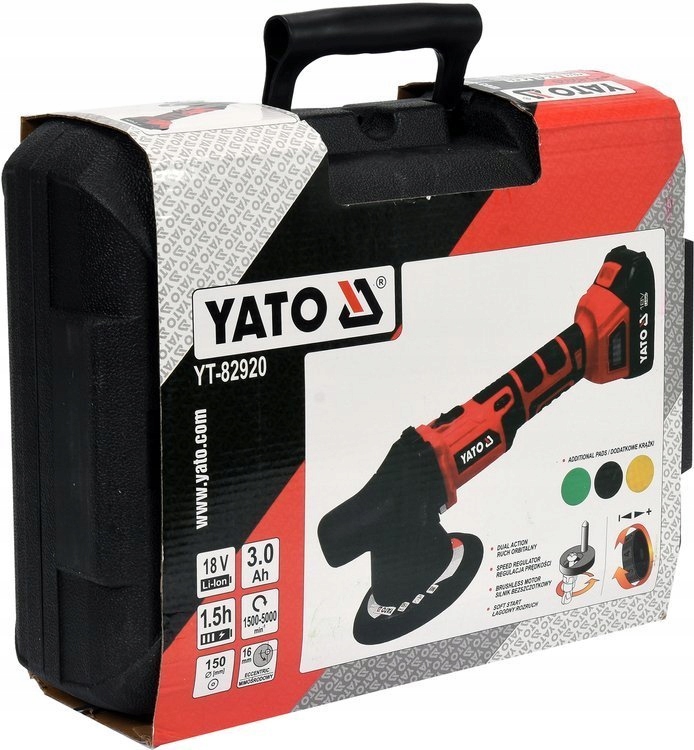 Современная эксцентриковая полировальная машина, которая благодаря орбитальному перемещению головки исключает образование голограмм на кузове. Работа с полировальной пастой или воском занимает меньше времени, чем классическими полирами, а результат работы лучше. Машина работает от аккумулятора, общего для всей системы Yato 18 В, и подходит, например, для ударного гайковерта YT-82805, угловой шлифовальной машины YT-82827, универсального пылесоса YT-85680 или светодиодного отражателя 1600 лм № 1. YT-82961.
