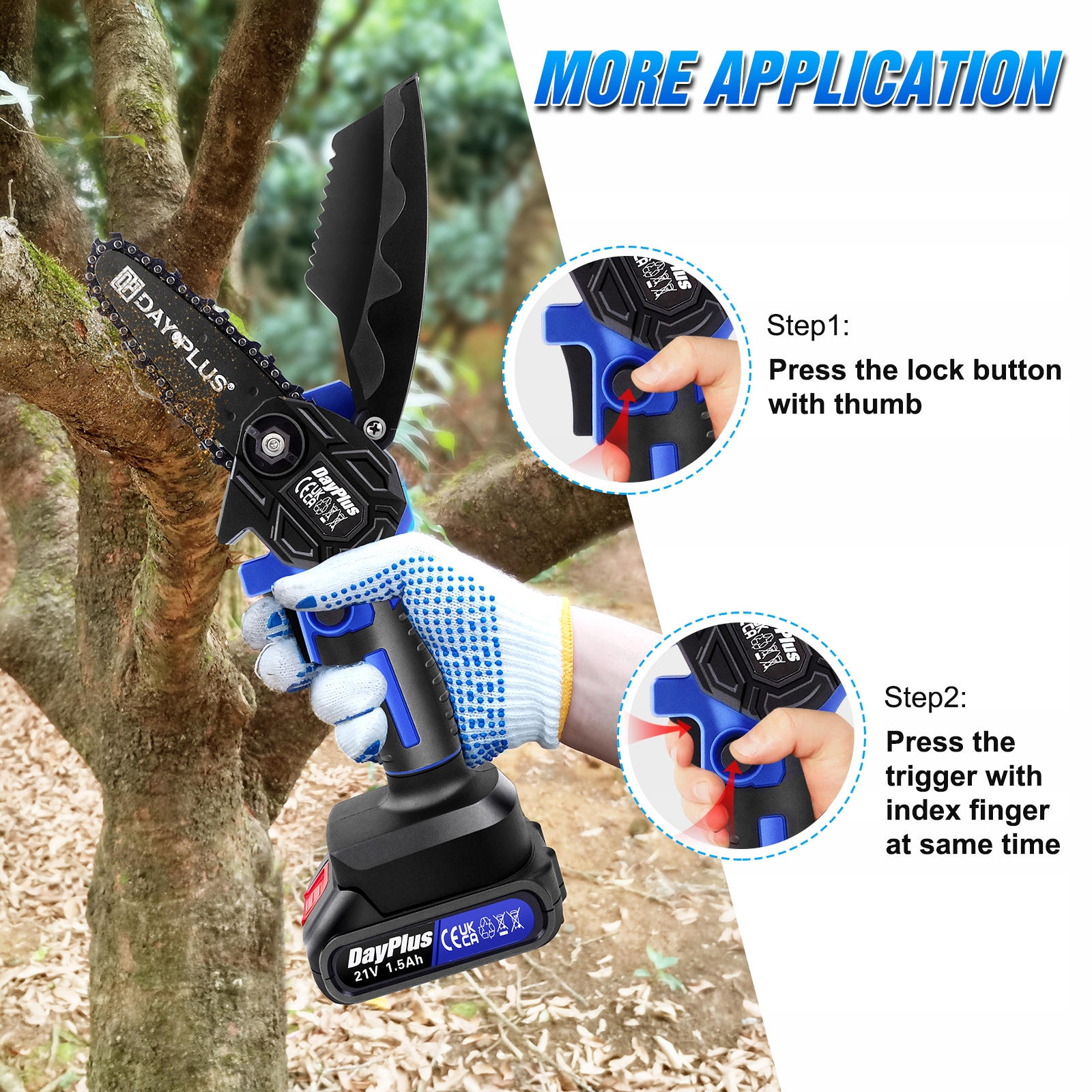 Беспроводная электрическая мини-бензопила — это универсальный электроинструмент для резки, обрезки древесины и т. д. Она компактна и легка, но обеспечивает высокую производительность и, следовательно, эффективность для работы и дома.