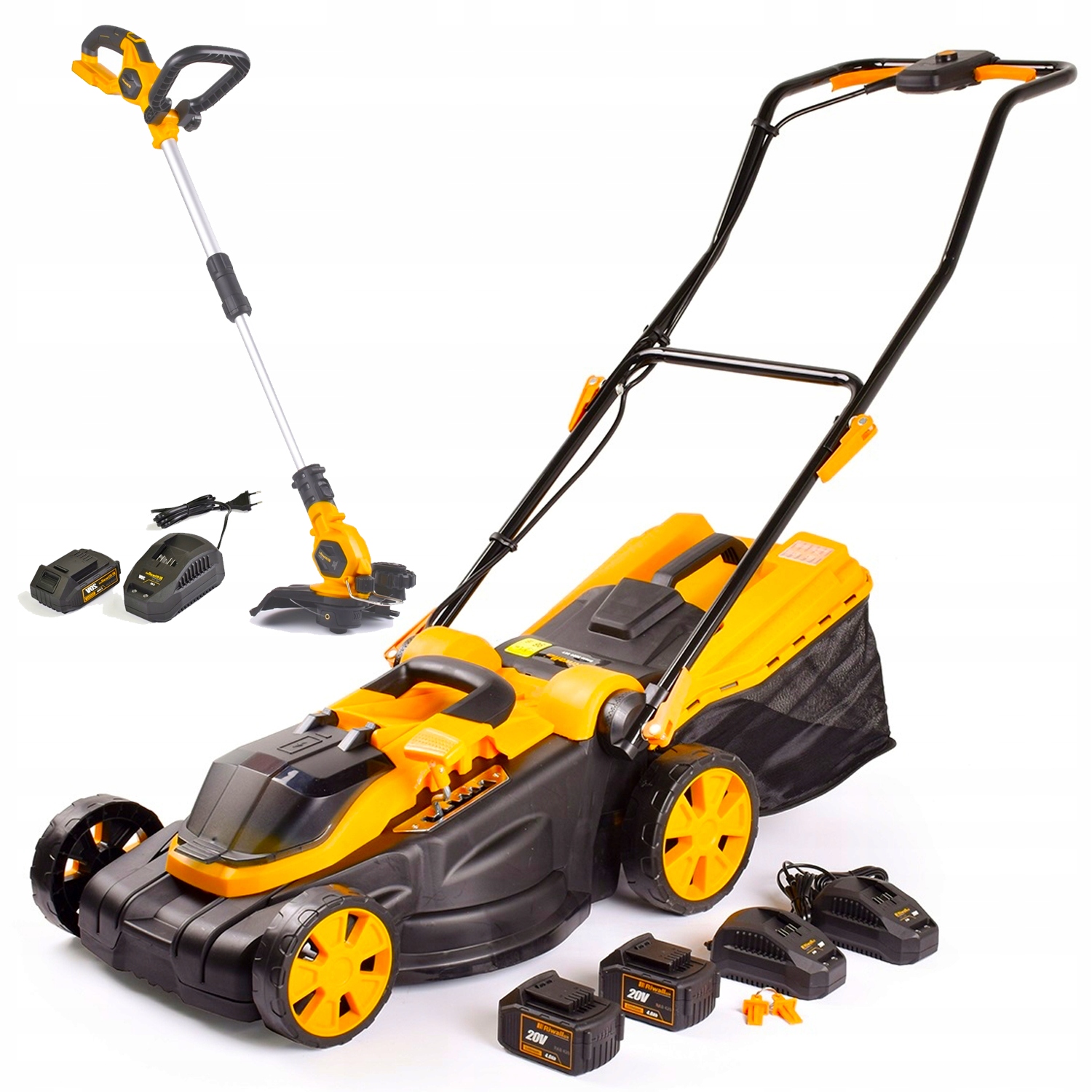 - Набор RALM 3820 — аккумуляторная газонокосилка 40 В Riwall с аккумуляторной технологией 40 В. Отличное качество, передовые технологии, отличная эргономика и выгодная цена.