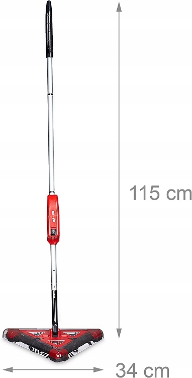 - С контейнером: электрическая подметальная машина с контейнером для мусора – общие размеры: высота х ширина х глубина: примерно 115 х 34 х 34 см.