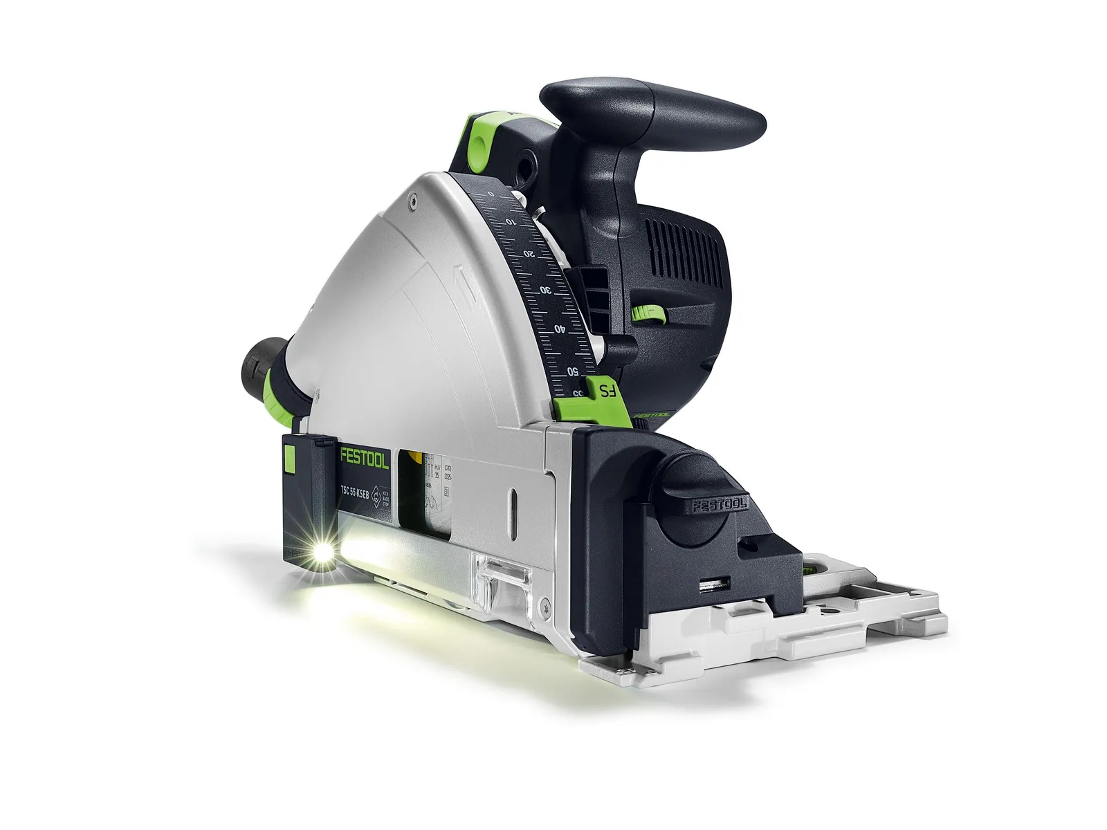 ✅ Возможность быстрой дооснащения и отличное освещение: прикрепляемая светодиодная лампа освещает зону резки. Освещение с правой стороны погружной пилы без теней – именно там, где это наиболее важно: непосредственно на заготовке.