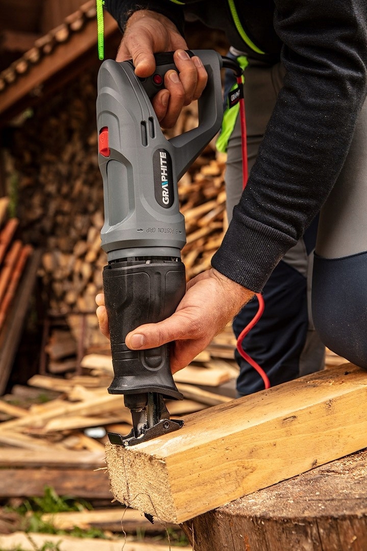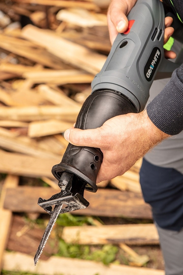 Сабельная пила GRAPHITE (арт. № 58G017), + БЕСПЛАТНЫЙ КАРАНДАШсовместима с литий-ионными аккумуляторами GRAPHITE Energy+ 18 В, предназначена для резки древесины, металла и пластика. Пила имеет двухпозиционный держатель инструмента, предназначенный для быстрой и безинструментальной замены пильных полотен. Скорость подачи пильного полотна регулируется степенью нажатия на кнопку переключателя. Переключатель защищен от случайного включения. Высокопрочный шпиндель позволяет работать при больших нагрузках. Пила имеет подвижную стопорную лапку, позволяющую изменять угол атаки пильного полотна. Для безопасности и комфорта ручка покрыта противоскользящим материалом.