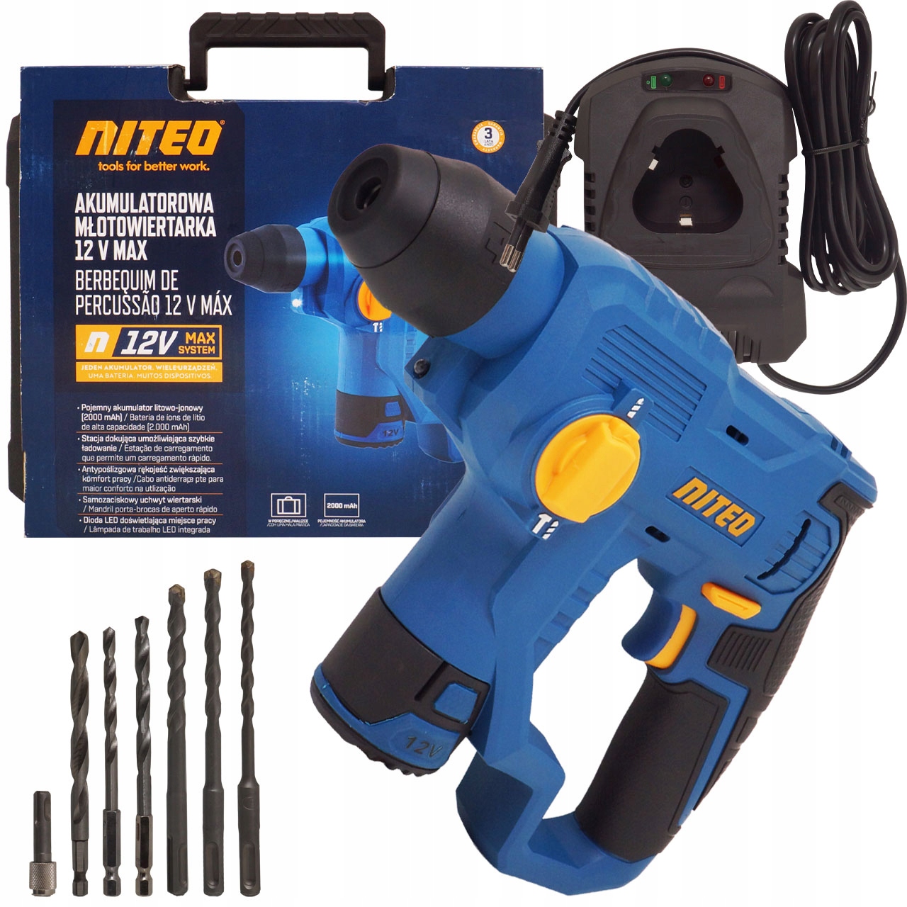 АККУМУЛЯТОРНАЯ УДАРНАЯ ДРЕЛЬ NITEO 12 В МАКС. АДАПТЕР SDS + НАБОР СВЕРЛ