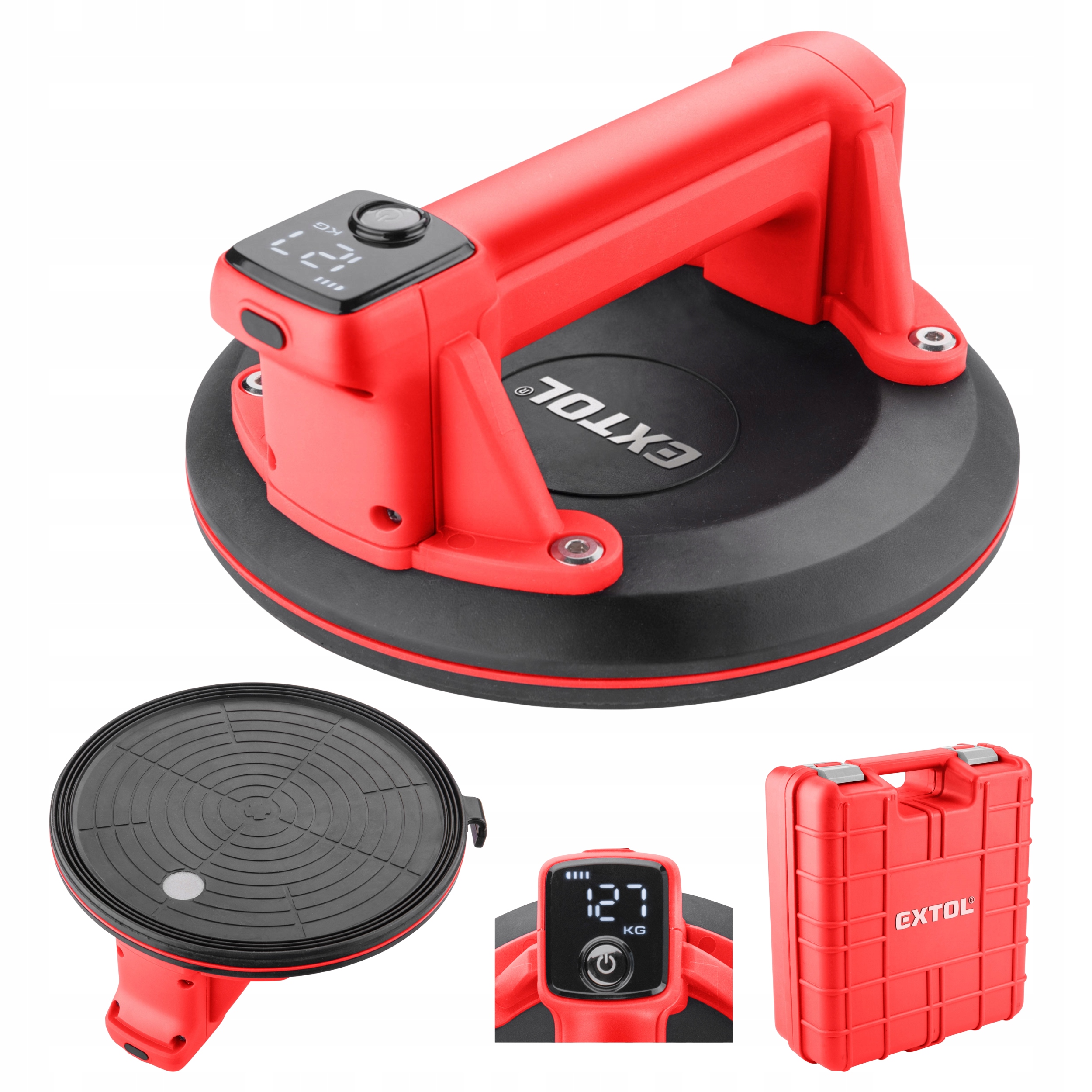 Вакуумная присоска характерна эргономичным дизайном, создаваемый вакуум отображается на ЖК-дисплее.