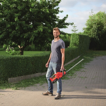 Беспроводные кусторезы сочетают в себе преимущества газовых и электрических кусторезов. Режим ECO позволяет продлить время работы за счет незначительного снижения скорости вращения полотна. Это решение является отличным выбором при обрезке, например, самшита.