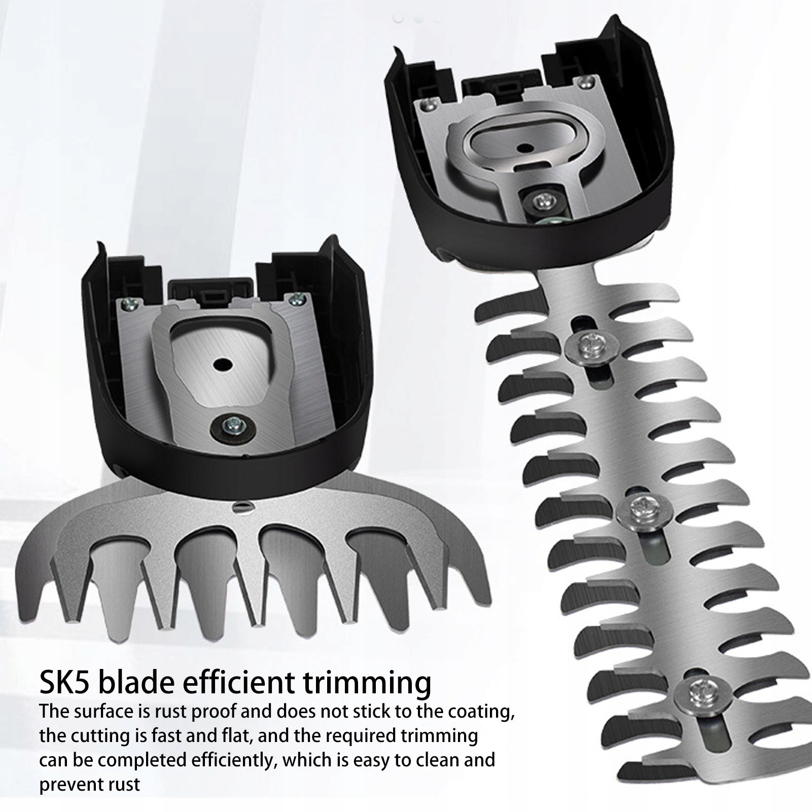 3. Долговечность: лезвие из нержавеющей стали SK5. После использования лезвия электрического триммера для кустарников своевременно очищайте его и храните в сухом состоянии. Убедитесь, что лезвие ножниц для травы прослужит дольше.