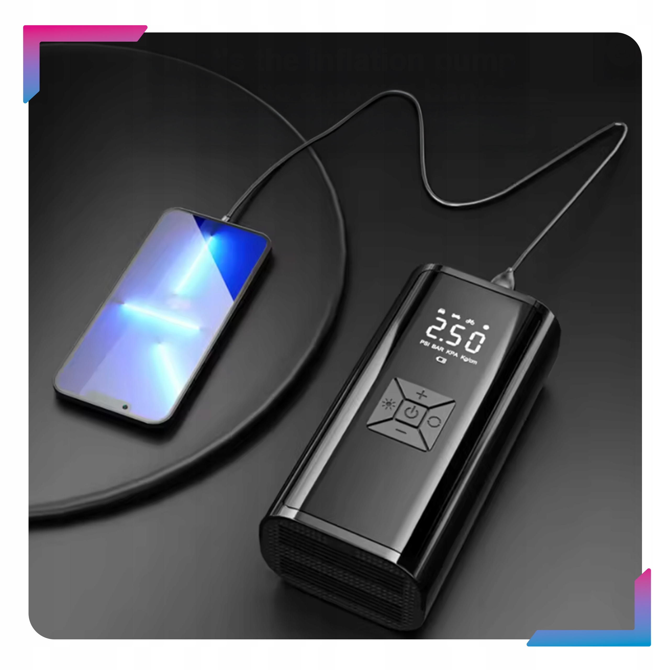 ✨ Аккумулятор емкостью 6000 мАч ✨ 5 режимов работы (4 определенных + 1 пользовательский) ✨ Точность ±1 PSI ✨ Давление до 150 PSI ✨ Расход воздуха до 35 л/мин ✨ Функция Powerbank + фонарик