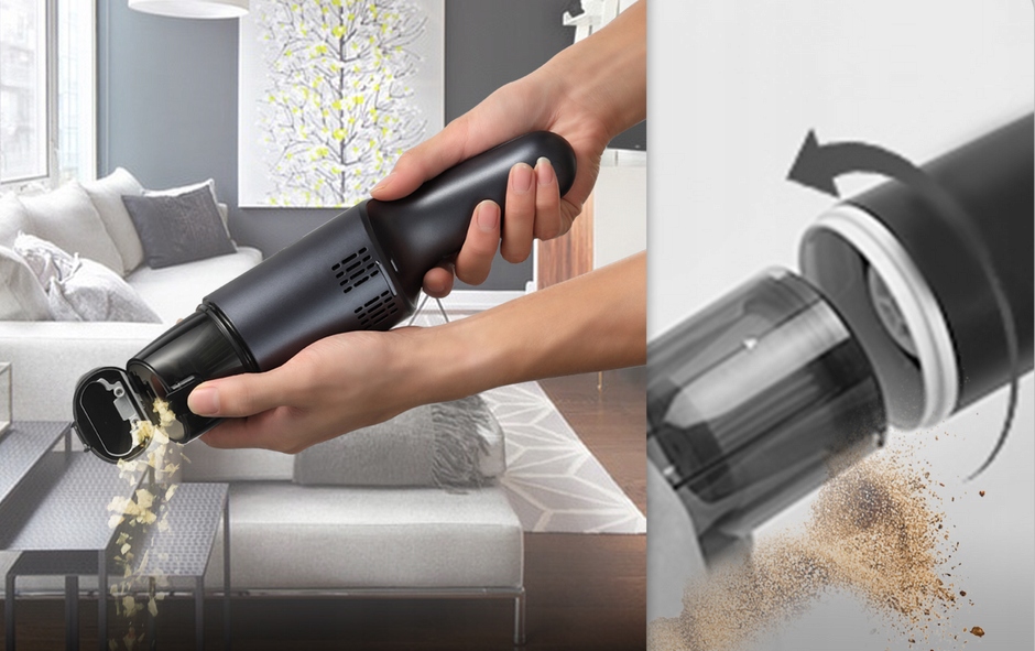 Компактный пылесос размером примерно с бутылку вина, работает на 100% без проводов и весит всего 0,7 килограмма, поэтому является идеальным решением. Его можно хранить в подстаканнике или в бардачке, чтобы он всегда был под рукой. Используйте и заряжайте, когда вам удобно. Он прост в использовании, с ним уборка не составляет труда, и он легко справляется с любыми типами загрязнений.