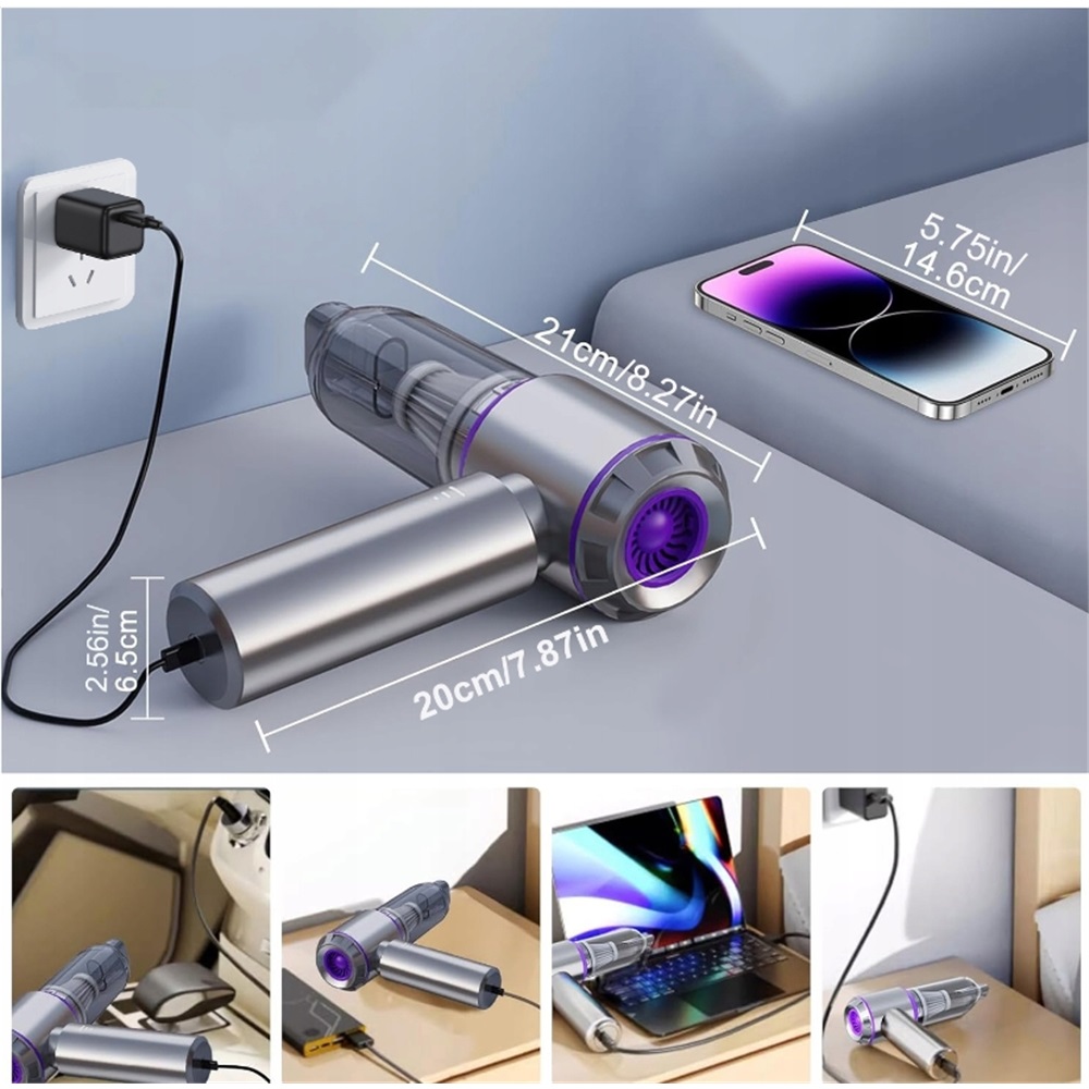 Этот беспроводной автомобильный пылесос оснащен улучшенным высокоскоростным бесщеточным двигателем, обеспечивающим высокую производительность.