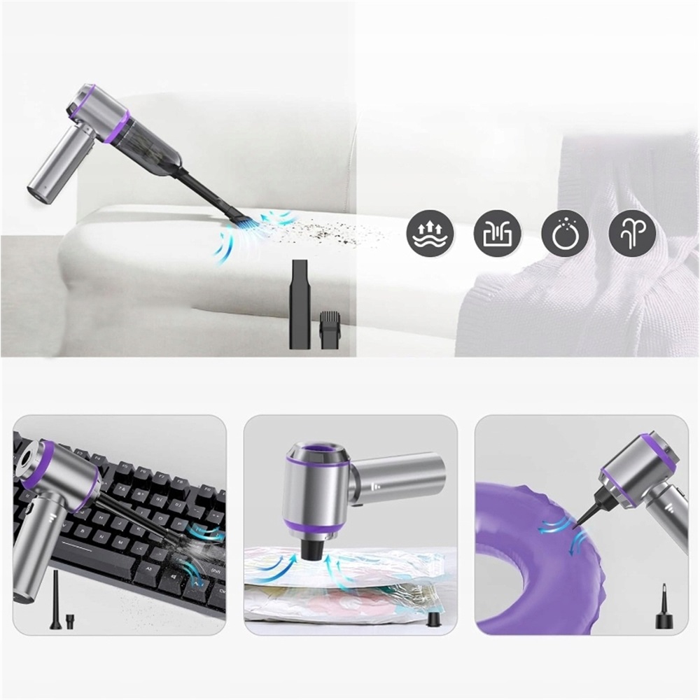 Это не просто пылесос. – этот беспроводной автомобильный пылесос оснащен различными функциями насадки, которые позволяют выдувать, сосать и накачивать, позволяя выполнение различных работ по уборке и техническому обслуживанию. Оснащен различными аксессуарами, которые можно использовать для выдувание, уборка пылесосом и надувание в различных ситуациях.