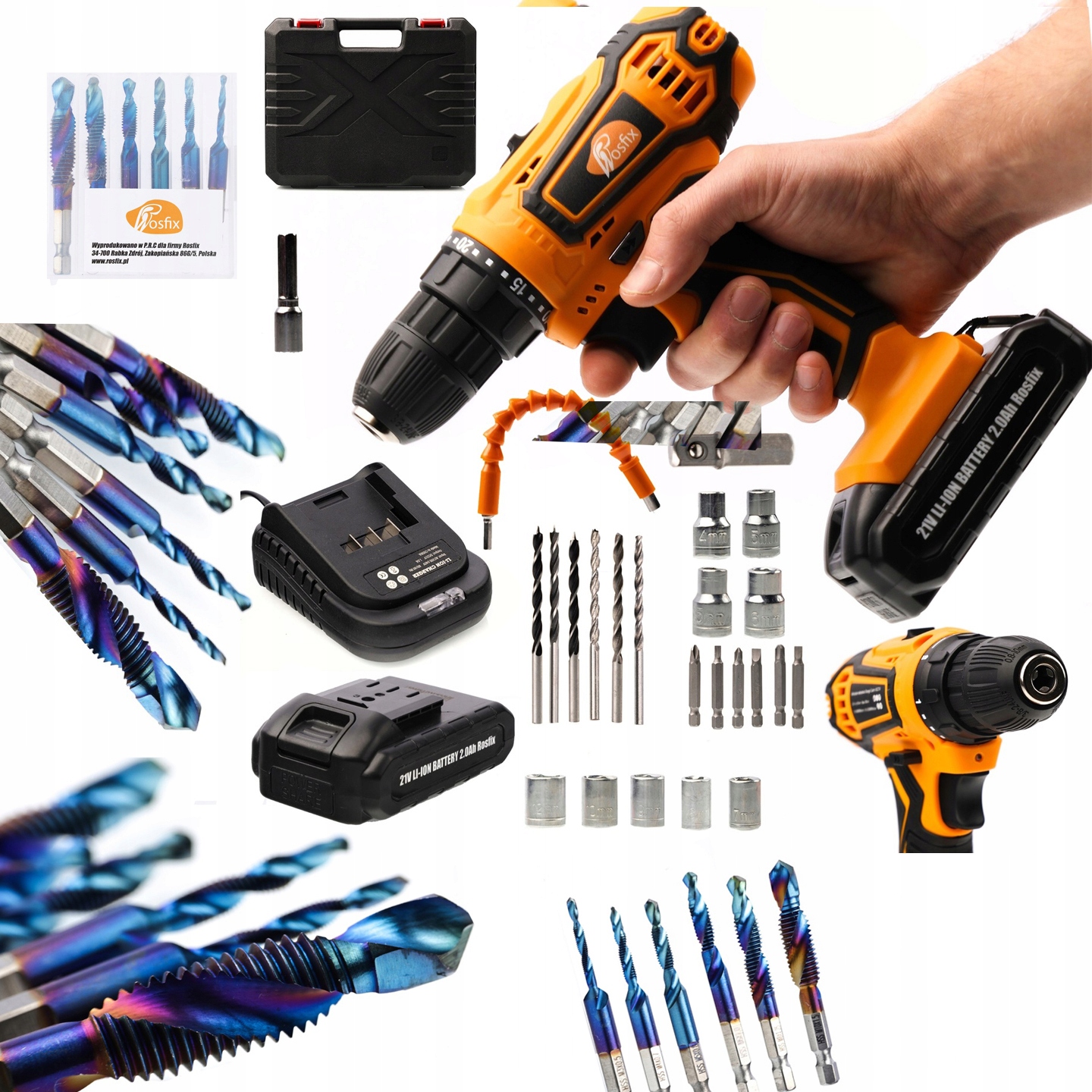 ✅ Аккумуляторная отвертка Rosfix Orange Castor OC21V: Это основной инструмент в наборе. Отвертка питается от аккумулятора и имеет мощность 21В. Имеет функцию завинчивания и сверления. Он прочен, надежен и идеально подходит для различного применения дома, в мастерской или при ремонте.