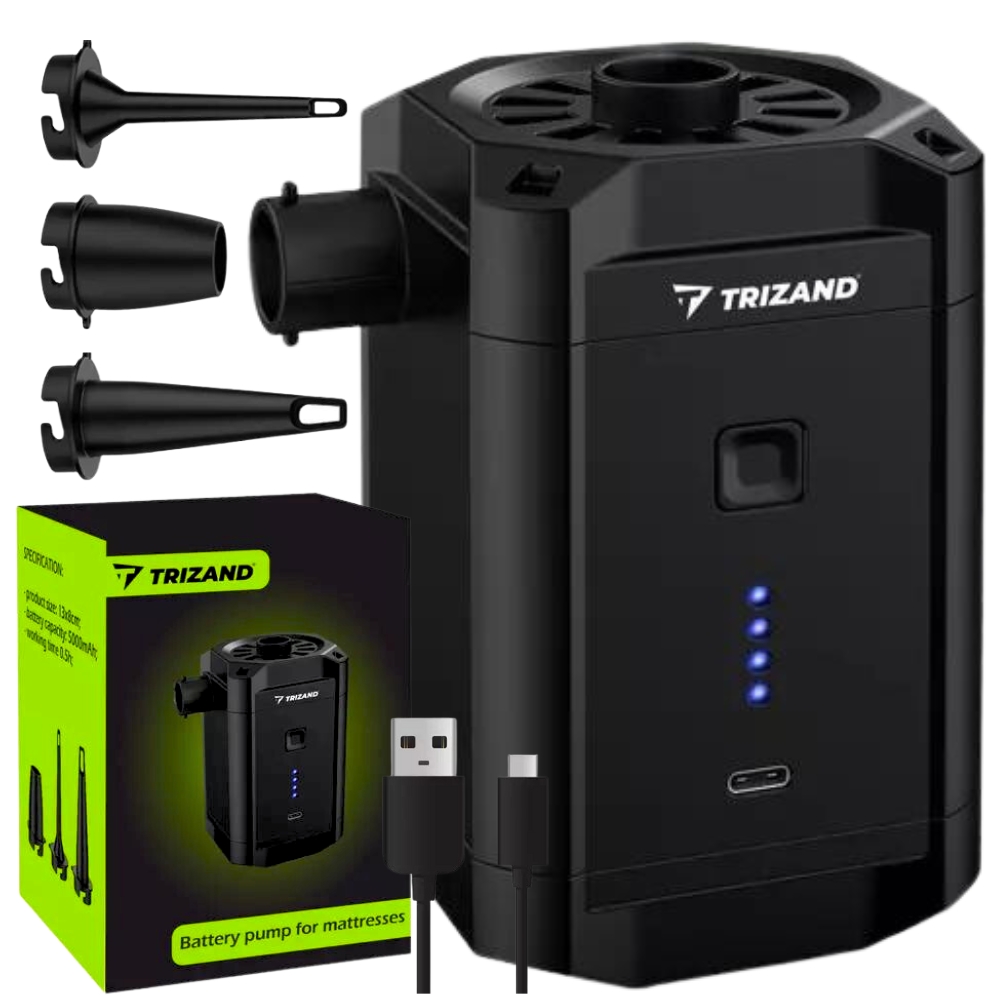 - БЕСПРОВОДНАЯ РАБОТА / АККУМУЛЯТОРНАЯ РАБОТА — наиболее важной функцией насоса является то, что он беспроводной. Надуть матрас можно даже на пляже, где нет доступа к электросети. Встроенный в насос аккумулятор имеет емкость 5000 мАч. Четыре светодиода на передней панели помпы сообщают нам о состоянии заряда аккумулятора. Заряжается аккумулятор с помощью кабеля USB Type-C.