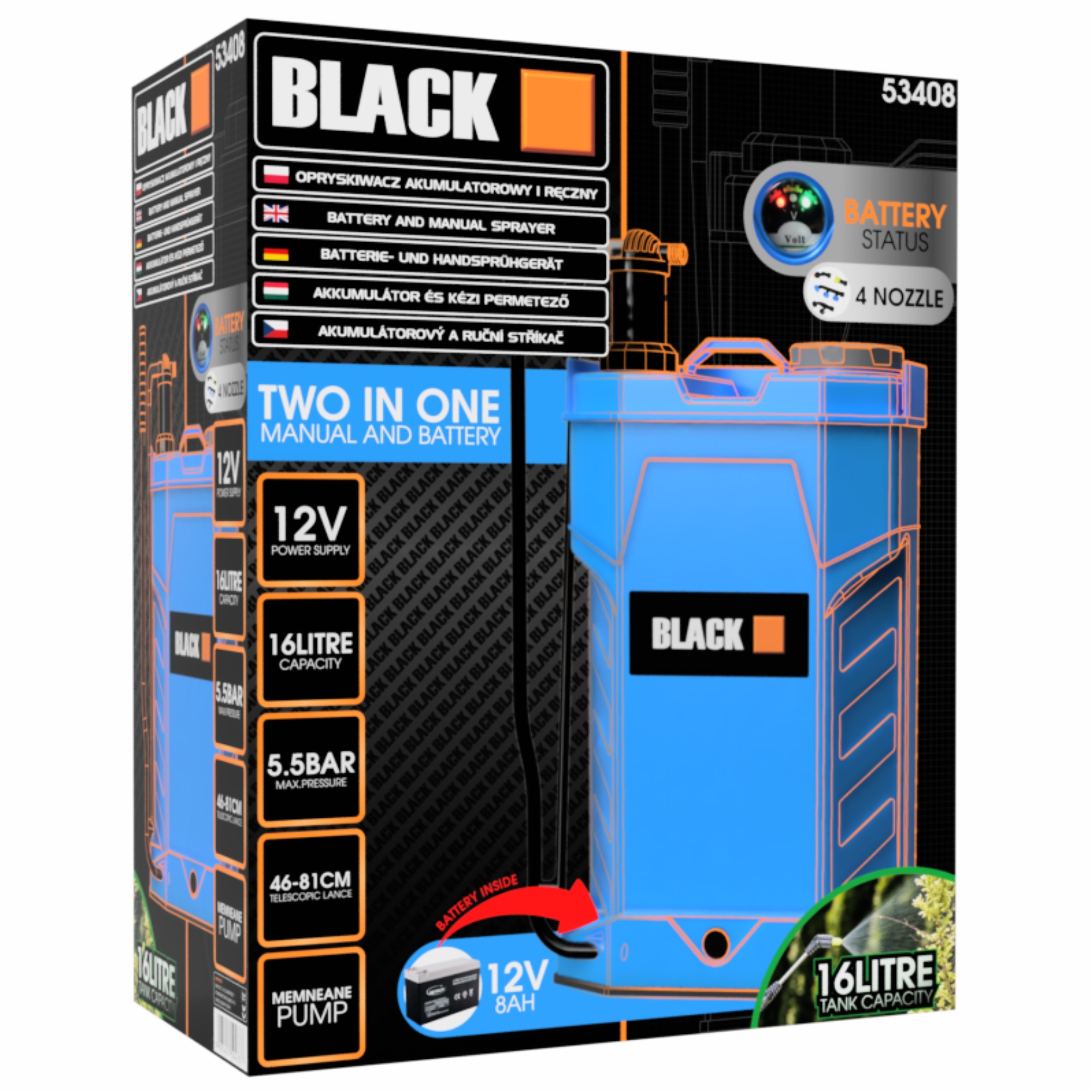 Представляем Вам прорывное решение в области защиты растений – современный аккумуляторный опрыскиватель Black XL AKU 12В 8Ач емкостью 16 литров!