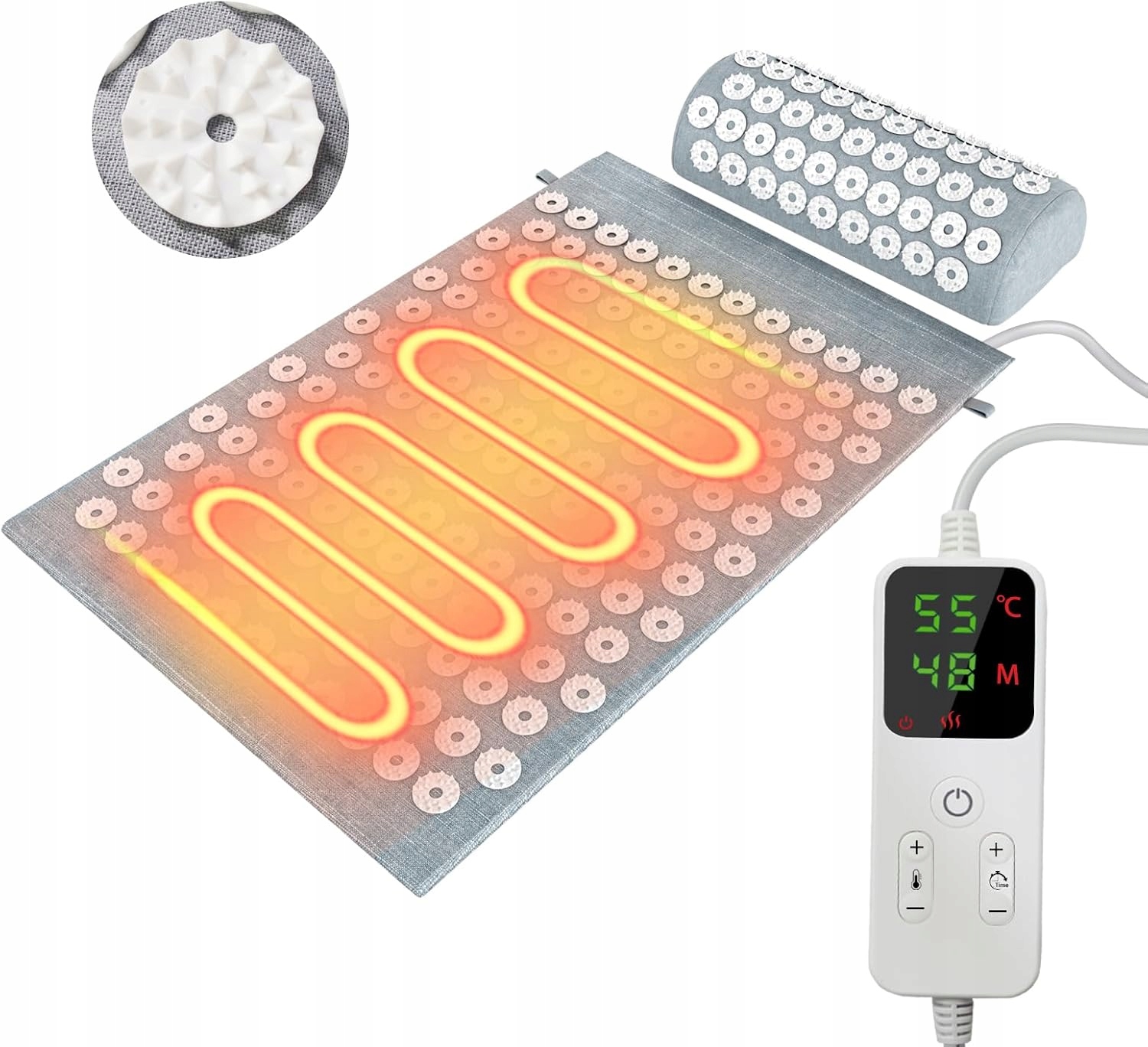 Нежное прогревание способствует кровообращению и помогает расслабить напряженные мышцы шеи, плеч и спины. Регулярное использование коврика избавляет от боли напряжения и усталости после долгого дня 🧘♀️