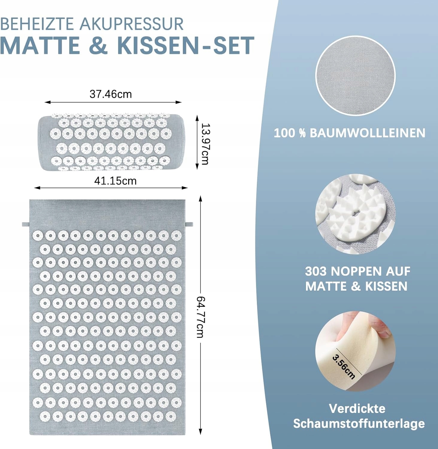 АКУПРЕСУРНЫЙ КОВРИК С ПОДОГРЕВОМ ДЛЯ МАССАЖНОГО РЕЛАКСАЦИИ СПИНЫ, ШЕИ И ПЛЕЧ